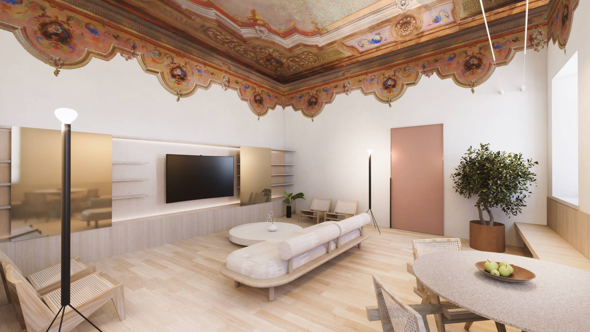 Labitazione, attualmente venduta al grezzo, offre una superficie ampia e armoniosamente distribuita, con soffitti alti e affreschi originali che raccontano la storia e il carattere nobile dellimmobile.
