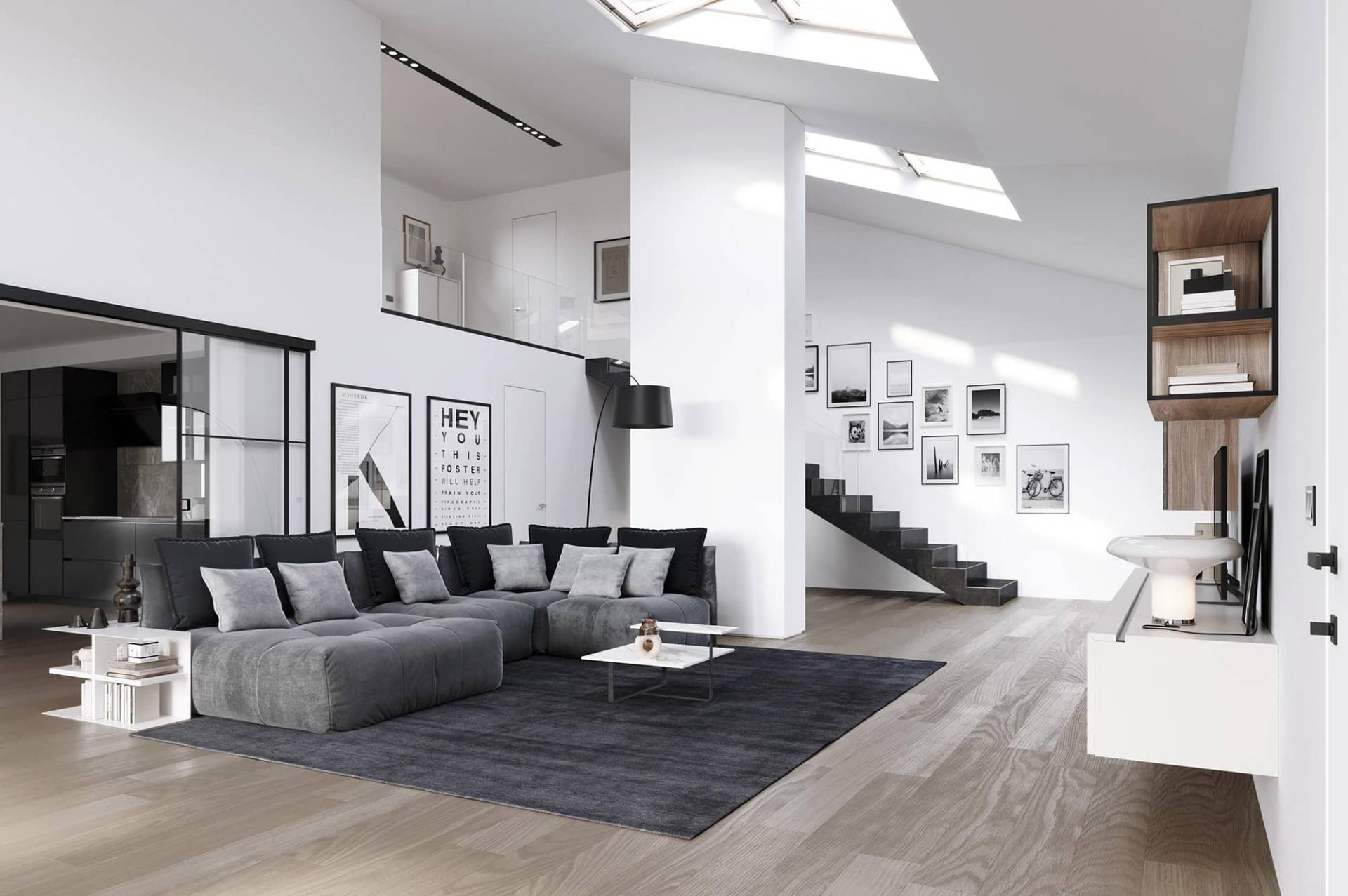 La zona giorno caratterizzata da un'ampia cucina a vista, luminosa e moderna, perfetta per pranzi e cene in compagnia.