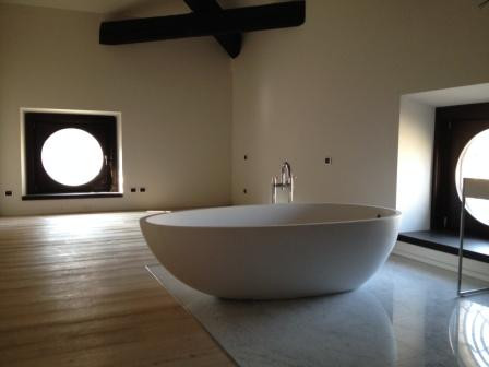 La zona notte composta da una camera da matrimoniale con suggestiva vasca da bagno posizionata al centro della stanza, completa la stessa la cabina armadio.