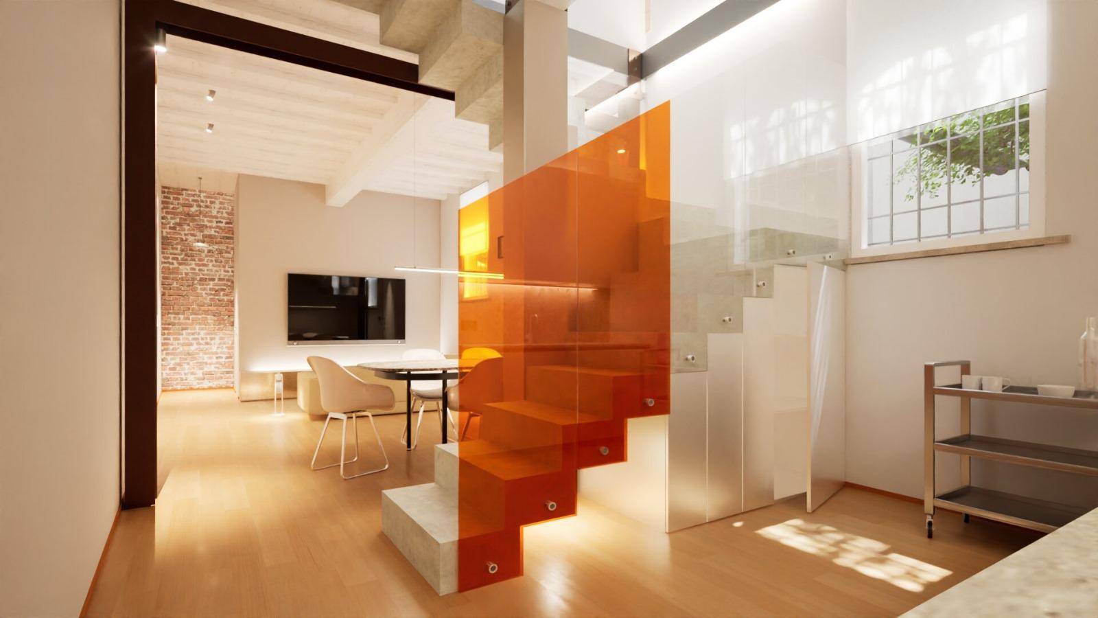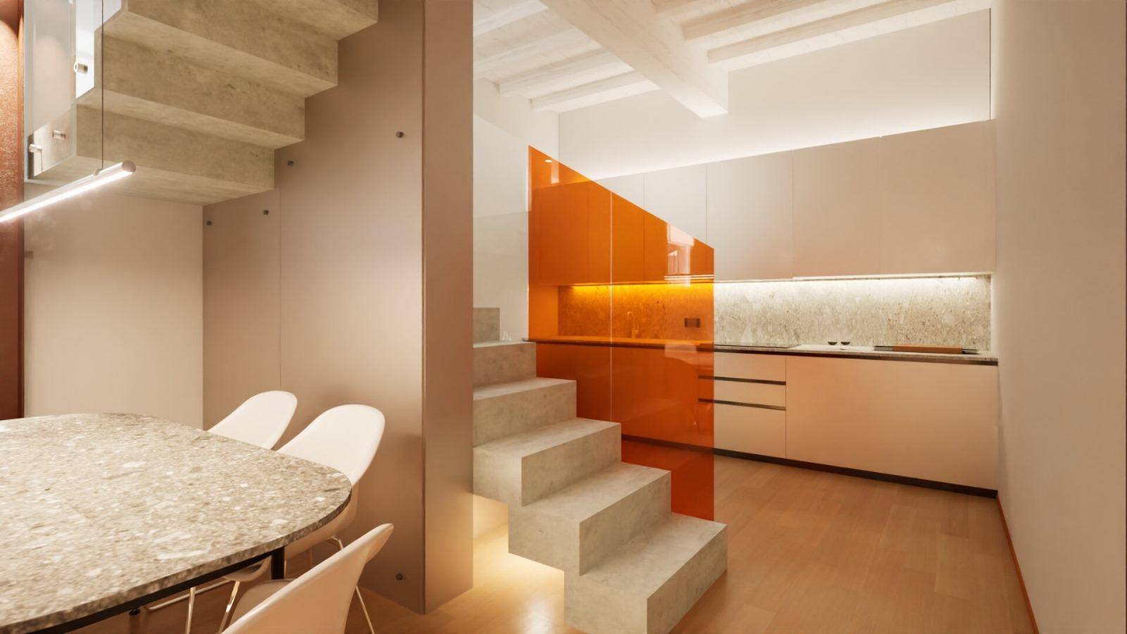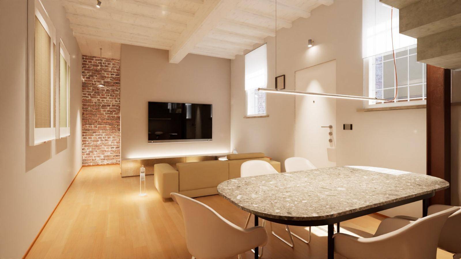 Caratteristiche Principali: - **Moderna Zona Giorno**: Accogliente soggiorno ideale per rilassarsi e intrattenere amici, le finestre si affacciano all'interno del cortile.
