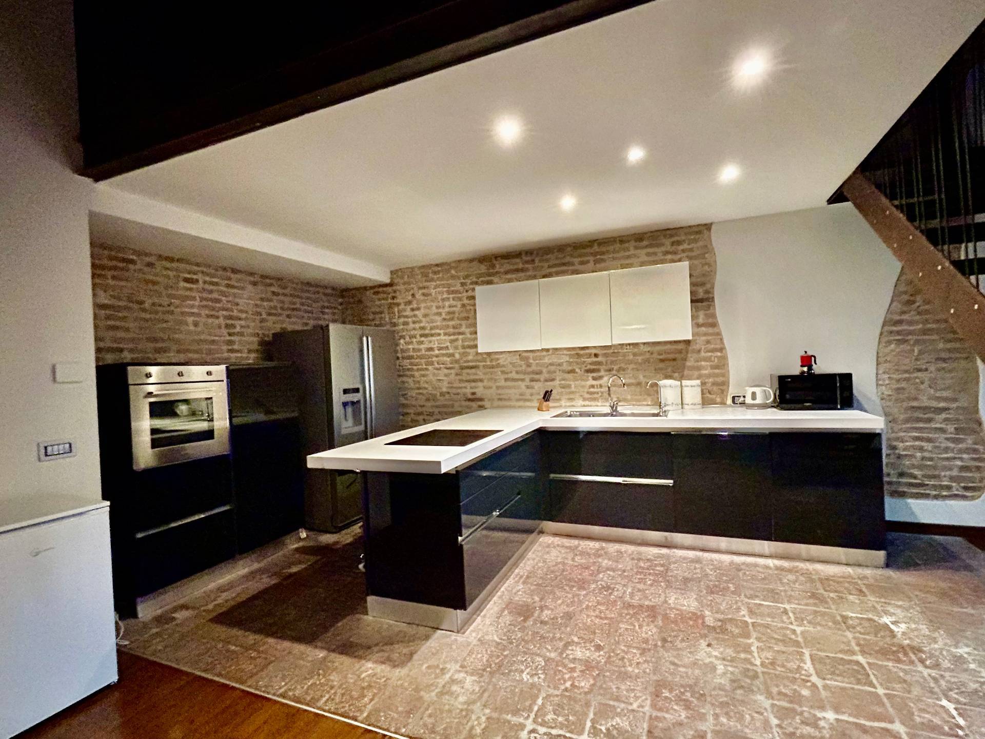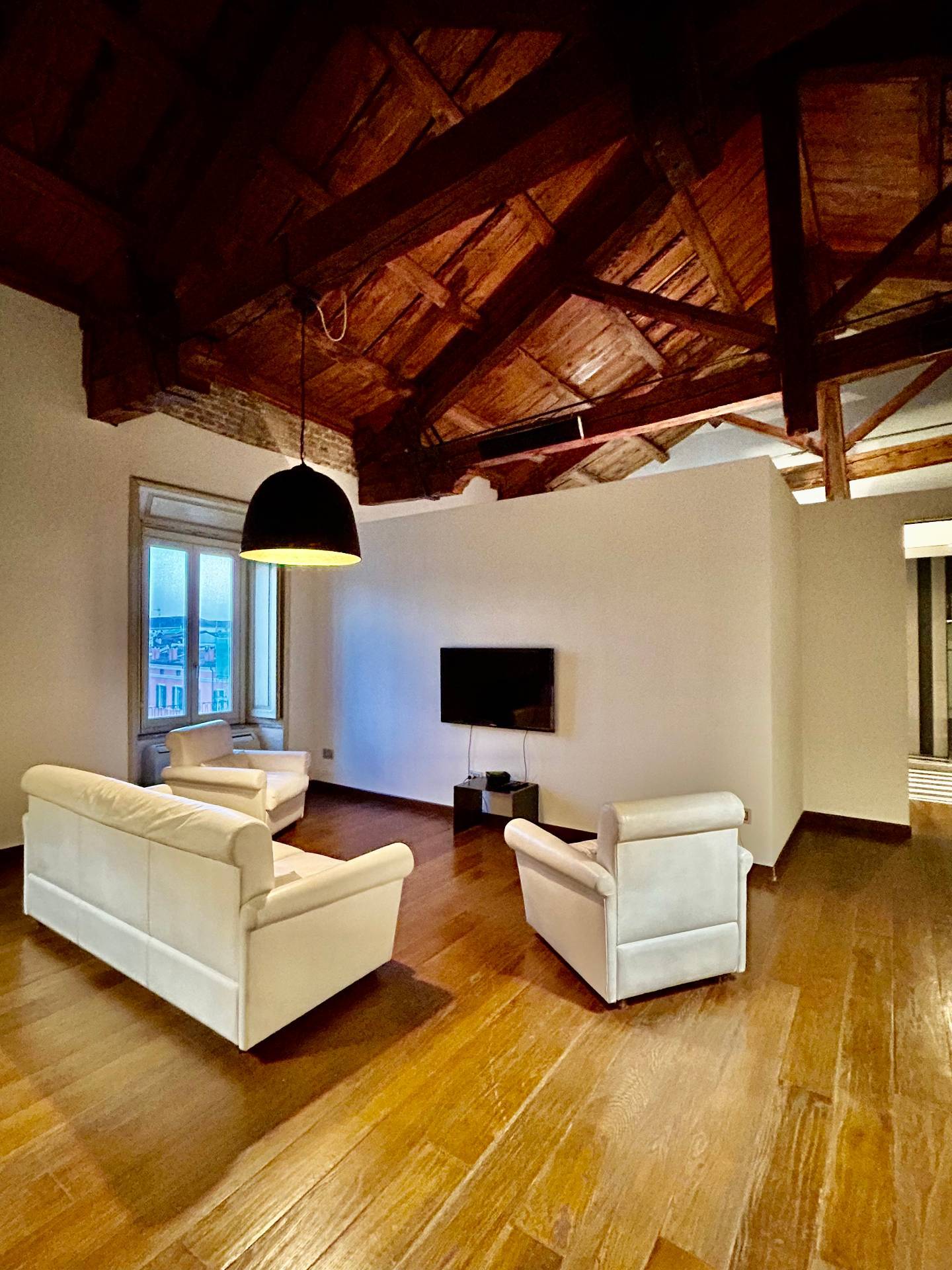 La zona cucina, pranzo ed il soggiorno sono illuminati da due grandi finestre che affacciano direttamente sulla meravigliosa Piazza Sordello.