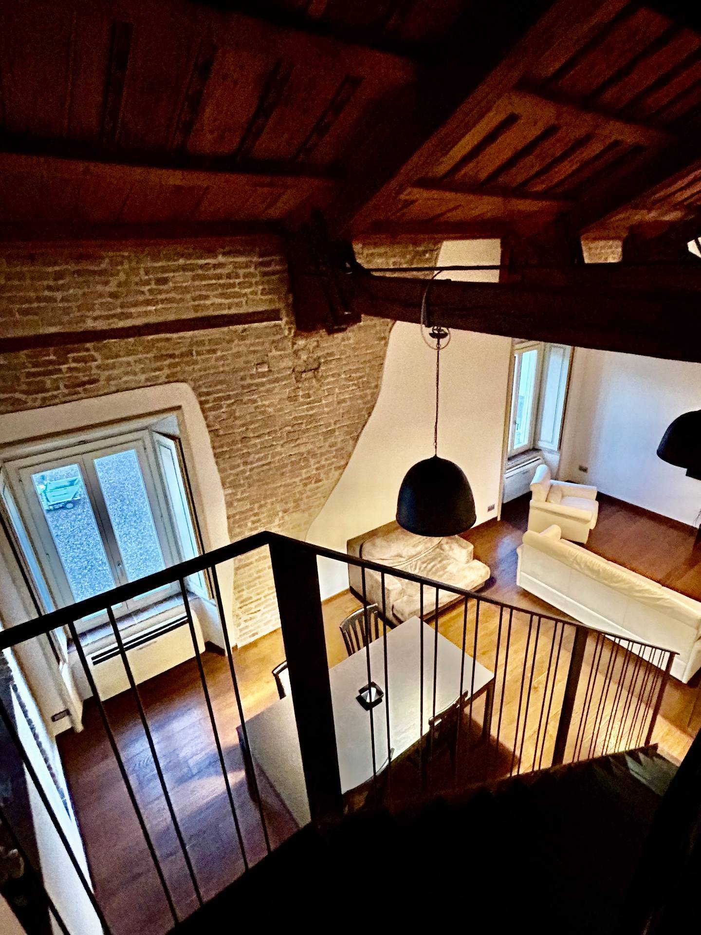 L'unit, situata al terzo ed ultimo piano preziosit da decori ornamentali sapientemente recuperati dell'epoca, si affaccia direttamente sulla zona living dove, pur condividendo una superficie openspace, risultano ben definite larea cucina, con sovrastante soppalco, la zona pranzo ed il soggiorno.