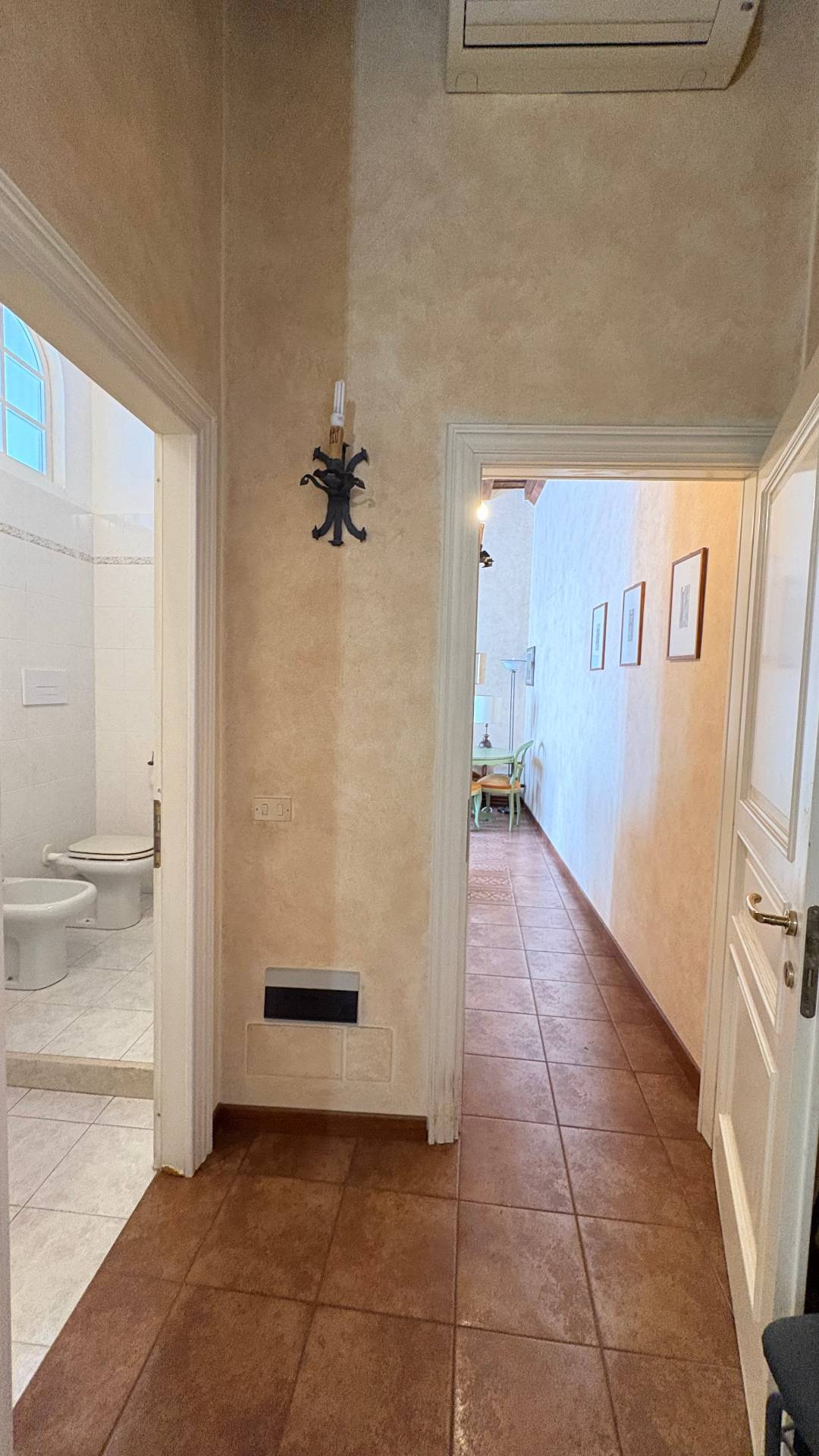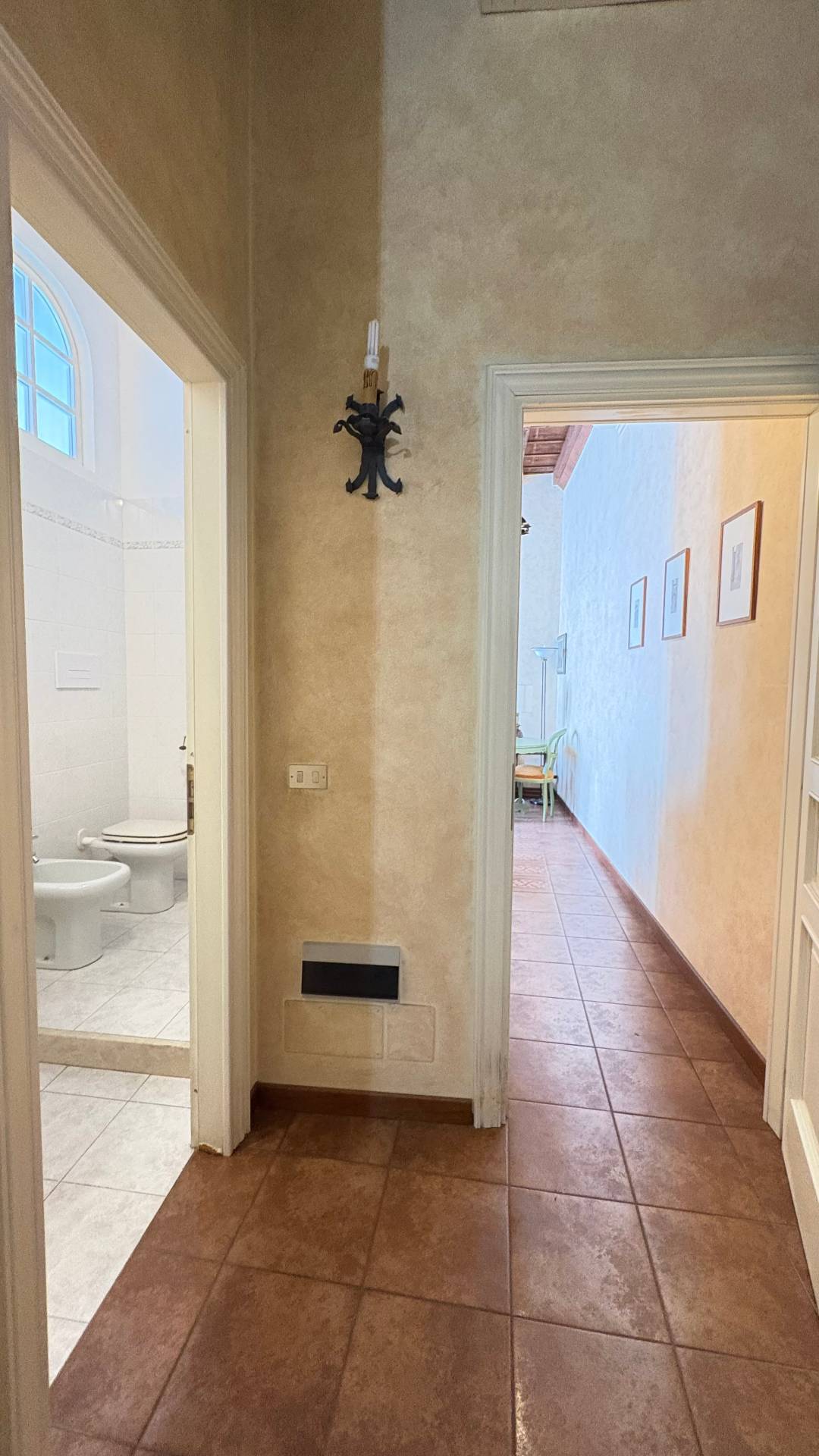 Possibilit di restyling dei due bagni per un upgrade rapido; cotto e travi a vista valorizzano laura storica, con potenziale di sbiancatura per un tocco contemporaneo.