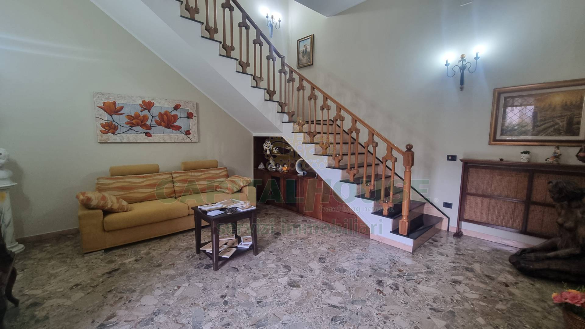 ***.*******.** bisogno di una casa di ampia metratura con deposito??????.. L'agenzia CapitalHouse, propone in vendita, a circa 5-600 metri dalla chiesa di San Simeone di Marcianise, un semindipendente in contesto con altre 5-6 famiglie cos composto: zona abitabile: -piano terra (interni 80mq CALPESTABILI): cucina, salone, studio, bagno + cortile di 40mq; -piano primo (110mq interni CALPESTABILI): cucina 2 camere di cui una con cabina armadio e bagno; -secondo piano (50mq interni CALPESTABILI): mansarda con punto basso 2,08mt e punto alto 2,43mt suddivisa in ampio salone, lavanderia, bagno e terrazzo di 50mq; porzione difronte: -piano terra: cortile di 105mq, box auto di 15mq e deposito di 85mq; -piano primo: deposito 90mq e terrazzo di 30mq; -Esposizione singola.