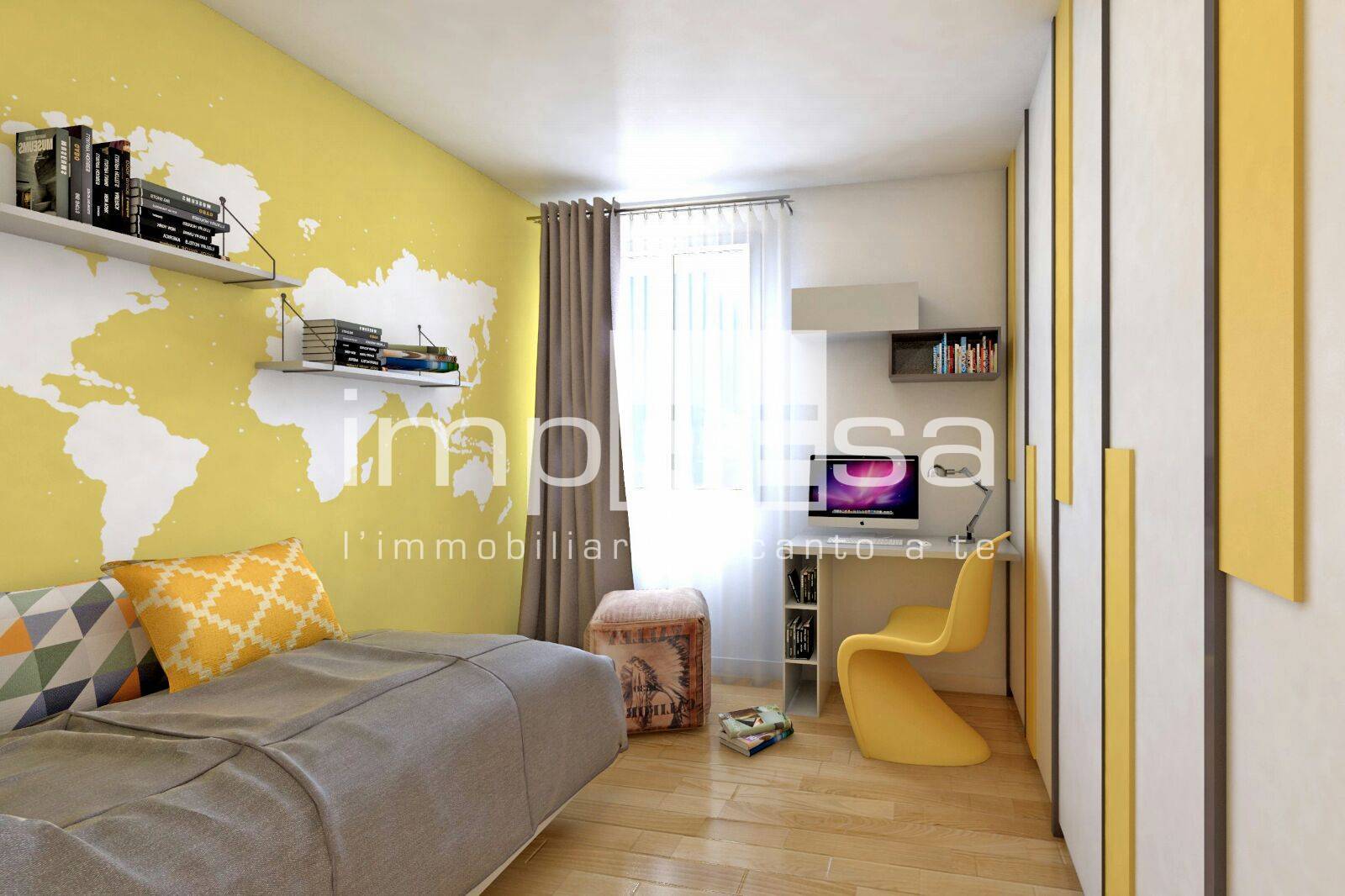 l'appartamento si compone di un ampio soggiorno cottura con doppie vetrate e piccolo scoperto , due camere da letto e due bagni.