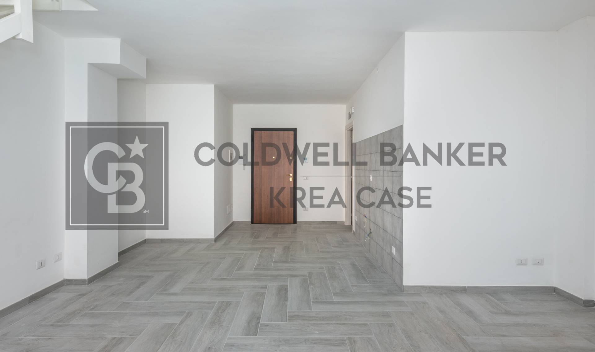 L'Appartamento "Edificio Due Interno Sette" qui proposto dispone di due ottime esposizioni, spazi esterni esclusivi per circa 10mq ed usufruisce della sua superficie interna su due livelli; la distribuzione interna degli spazi prevede al piano primo un ampio salone con una cucina a vista munito dell'accesso al balcone, un disimpegno arredabile conduce al servizio del piano; al piano mansarda sottotetto sono presenti invece due ampie stanze di cui una dispone al suo interno un ambiente dove possibile ricavare un servizio, l'altra dispone invece di un ambiente che possibile adibire ad armadio cabina.