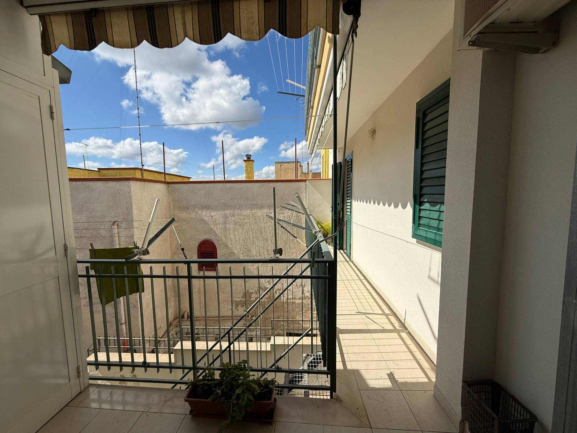 Balcone unico angolare con ripostiglio esterno.