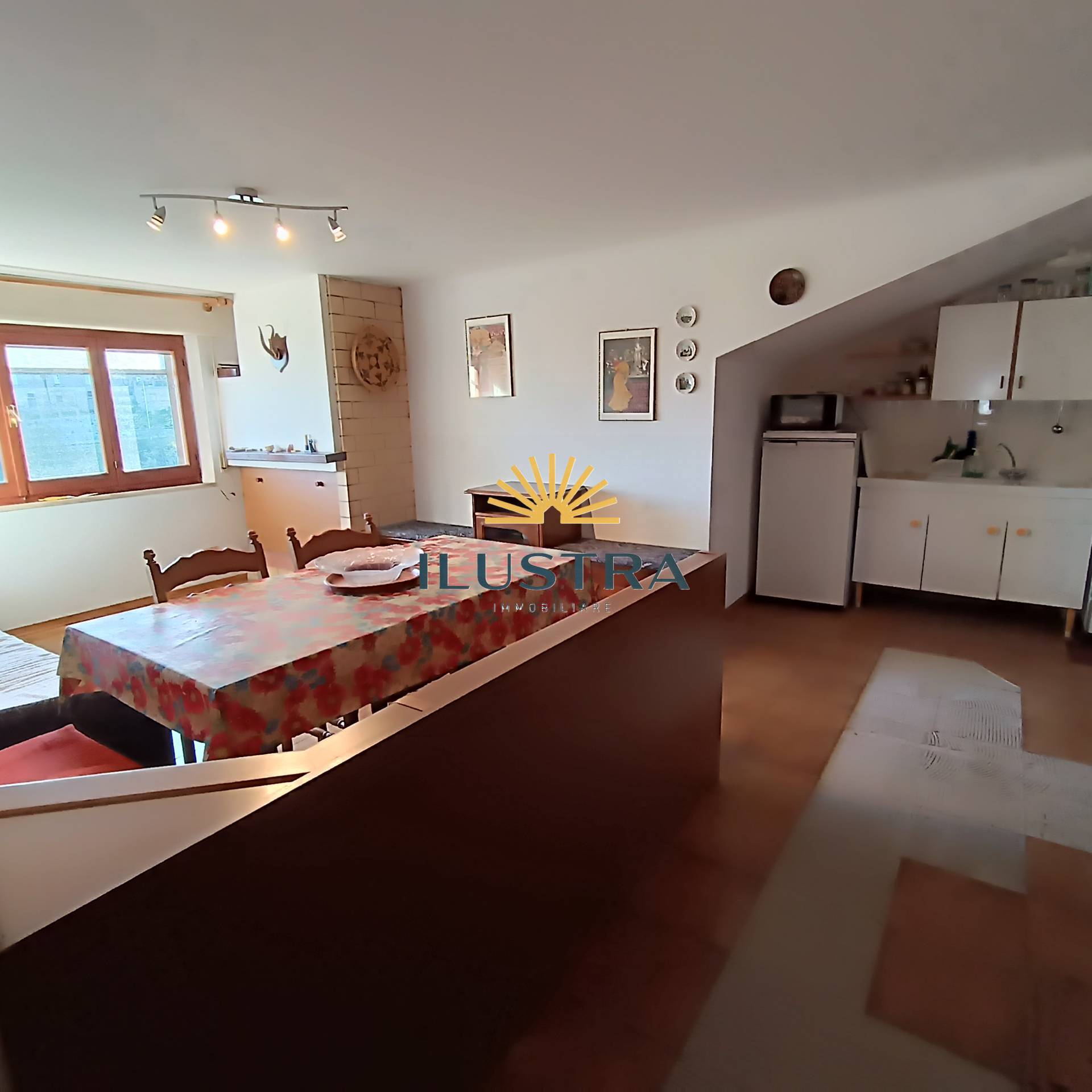 Composto da ingresso su ampio soggiorno con camino e angolo cottura, disimpegno, camera matrimoniale, bagno con doccia e finestra.