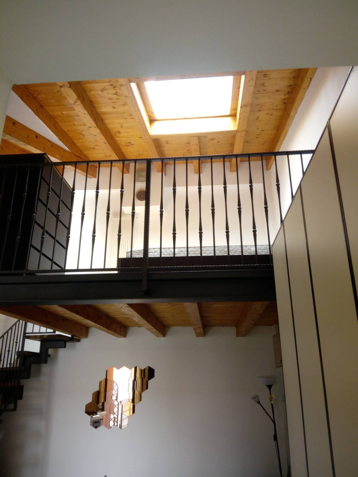 La scala a giorno con i gradini in legno conduce al soppalco che sar possibile utilizzare come zona notte.