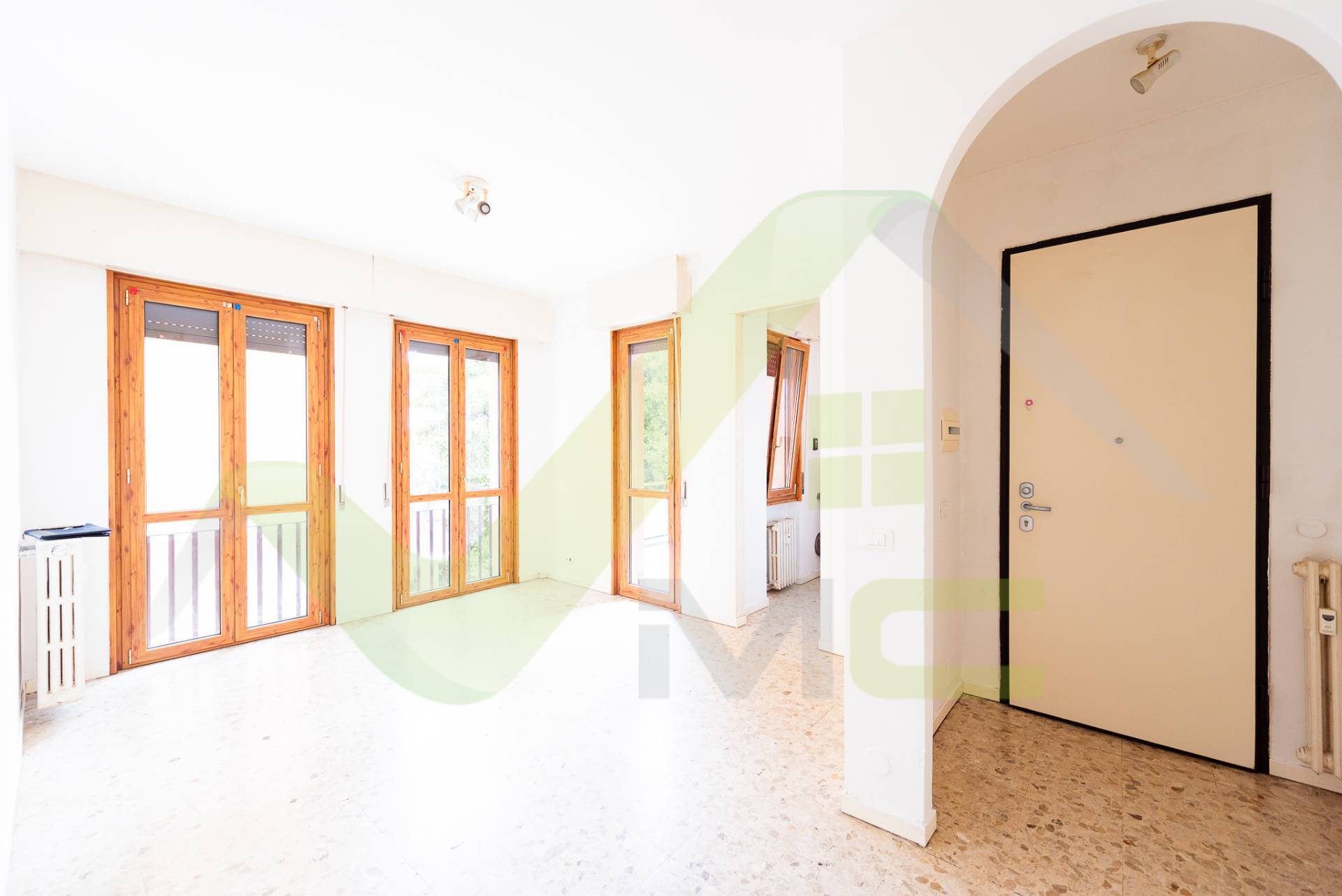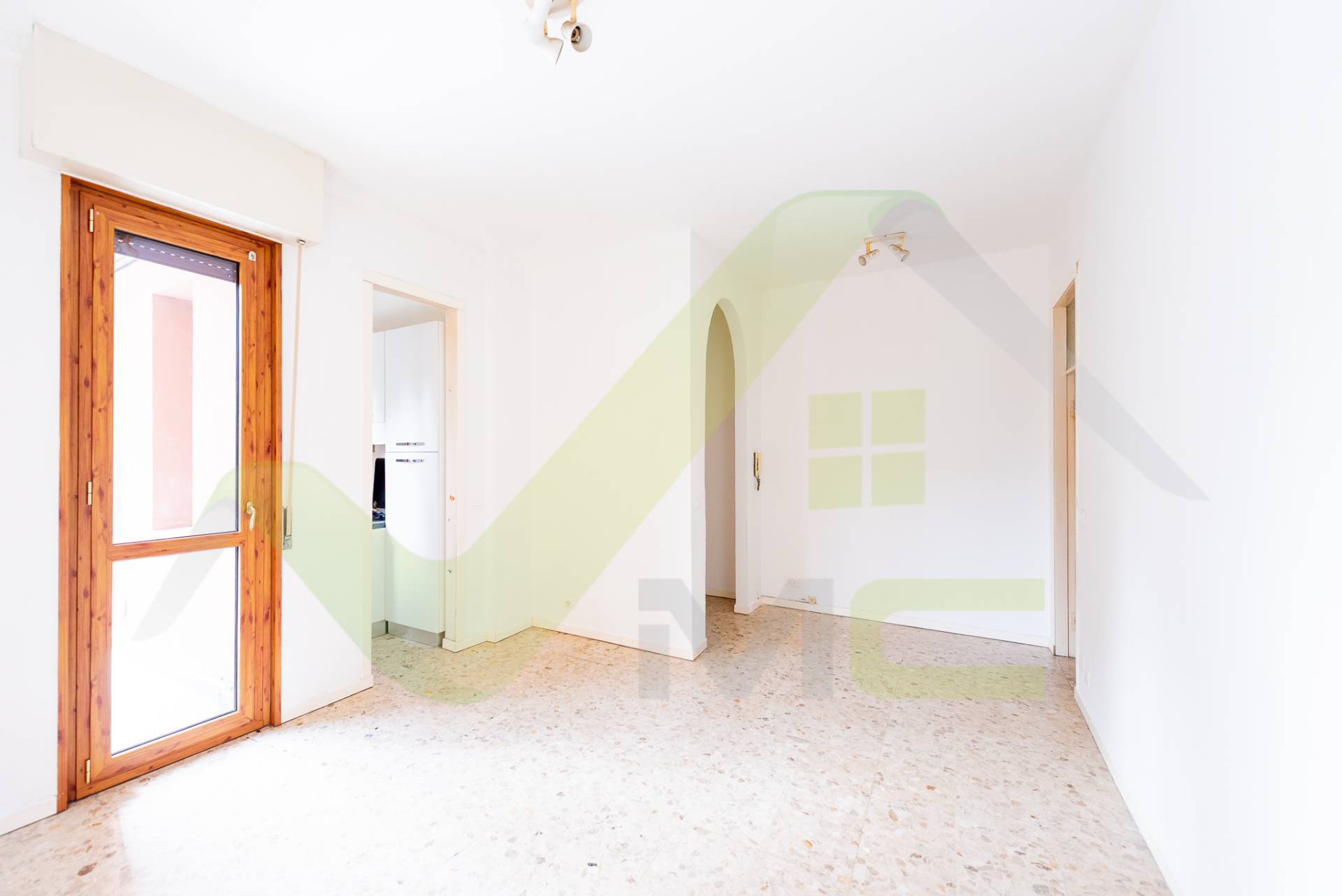 Zona giorno con ingresso su una luminosa zona living.