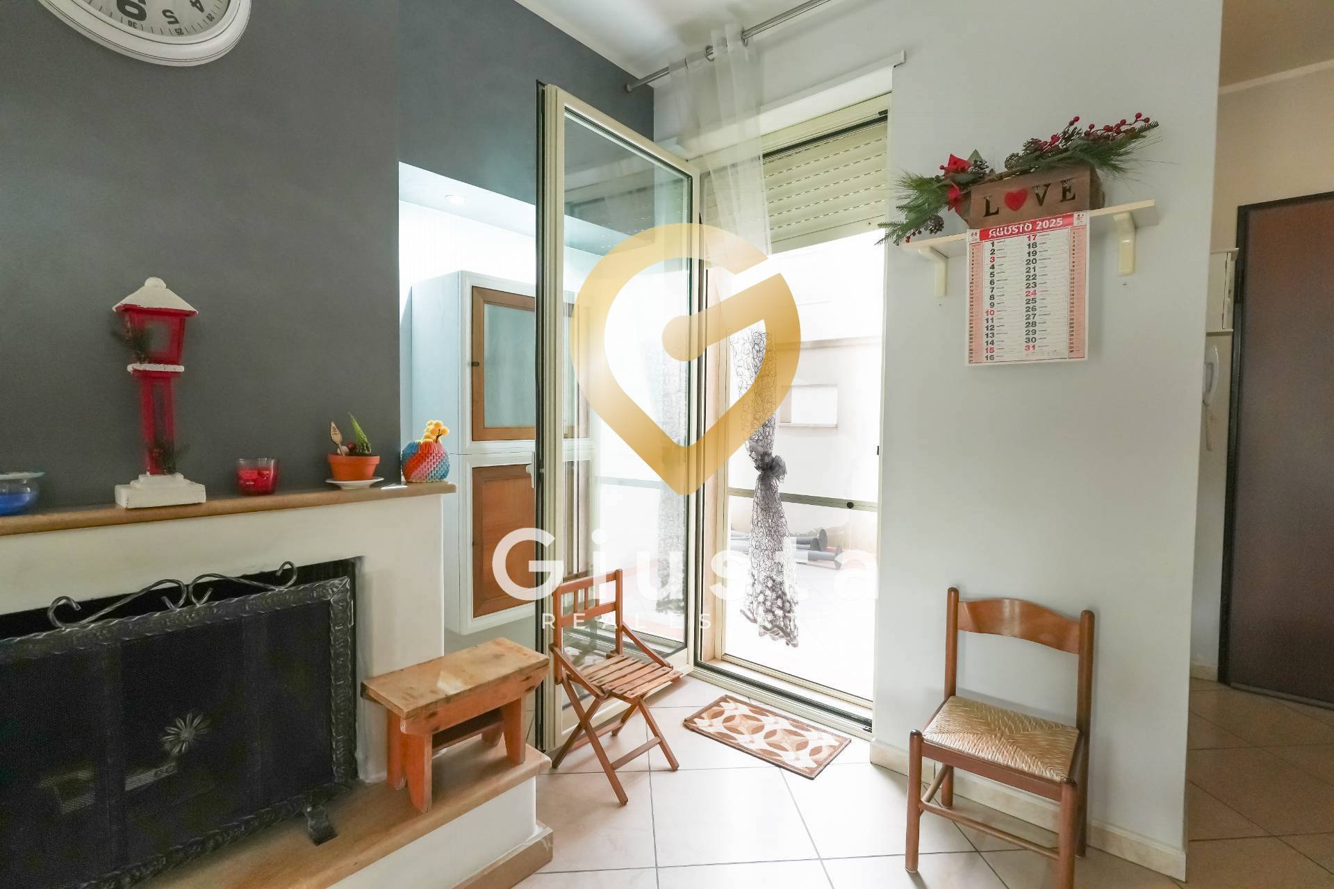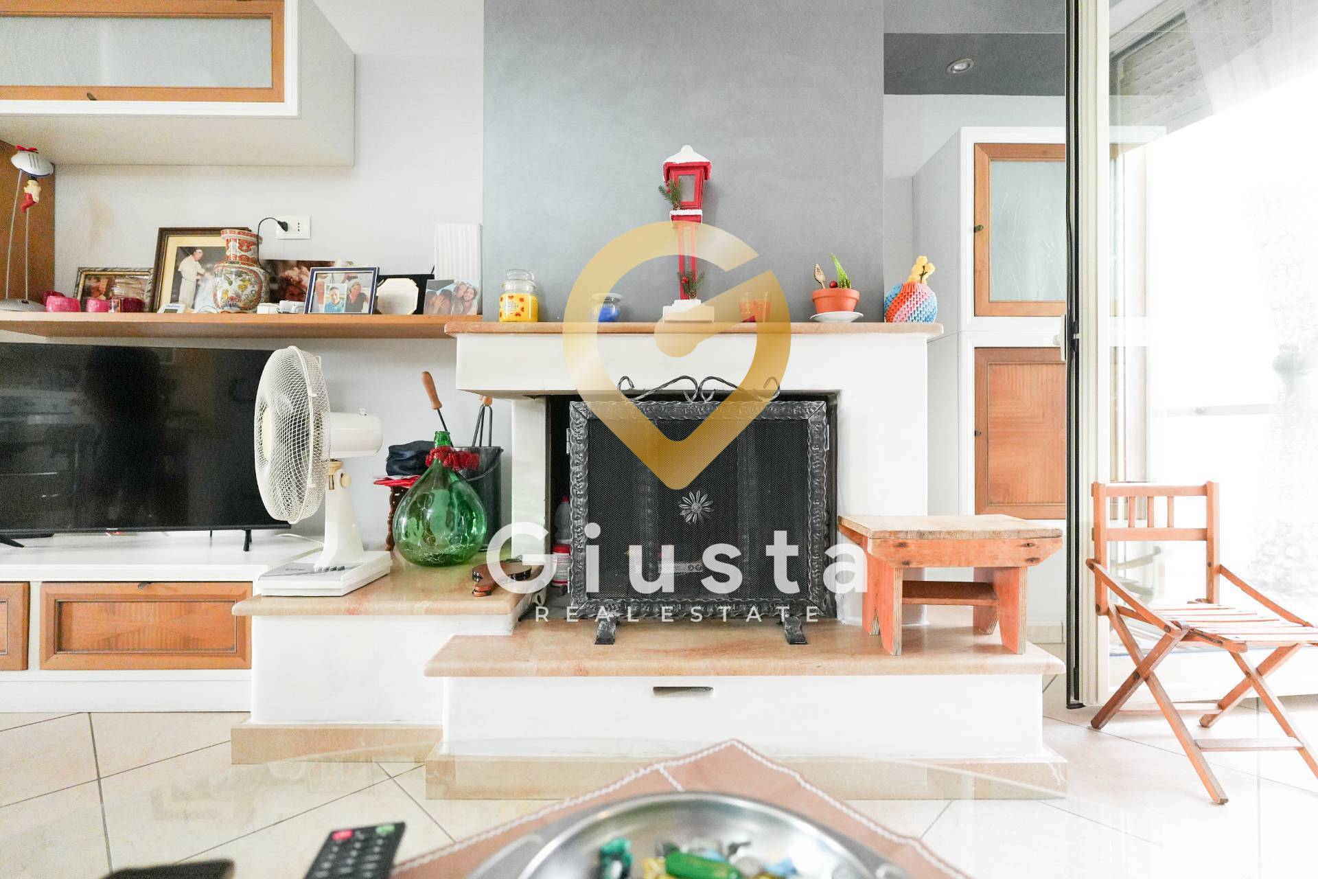 L'appartamento composto da tre vani, di cui ampio soggiorno con camino dove si accede ad un ampio balcone, cucina abitabile dove si accede al cortile privato, bagno, camera da letto e camera matrimoniale.