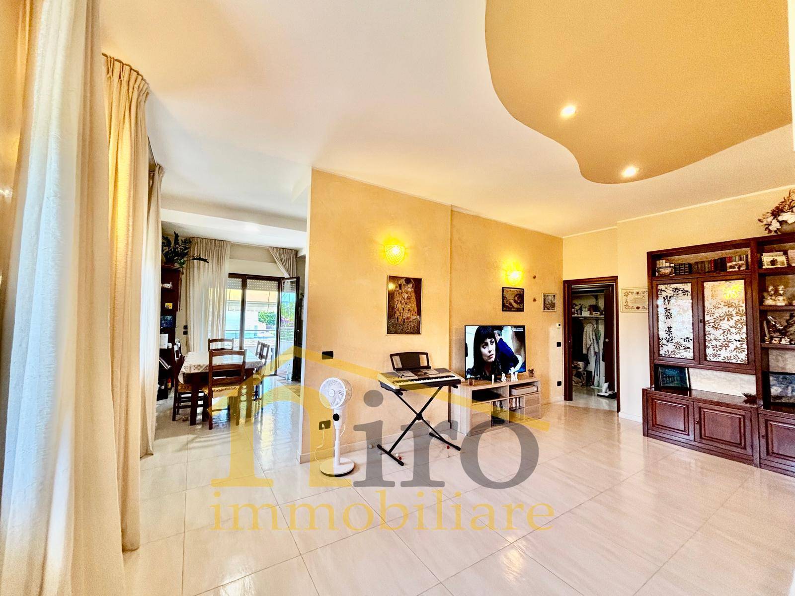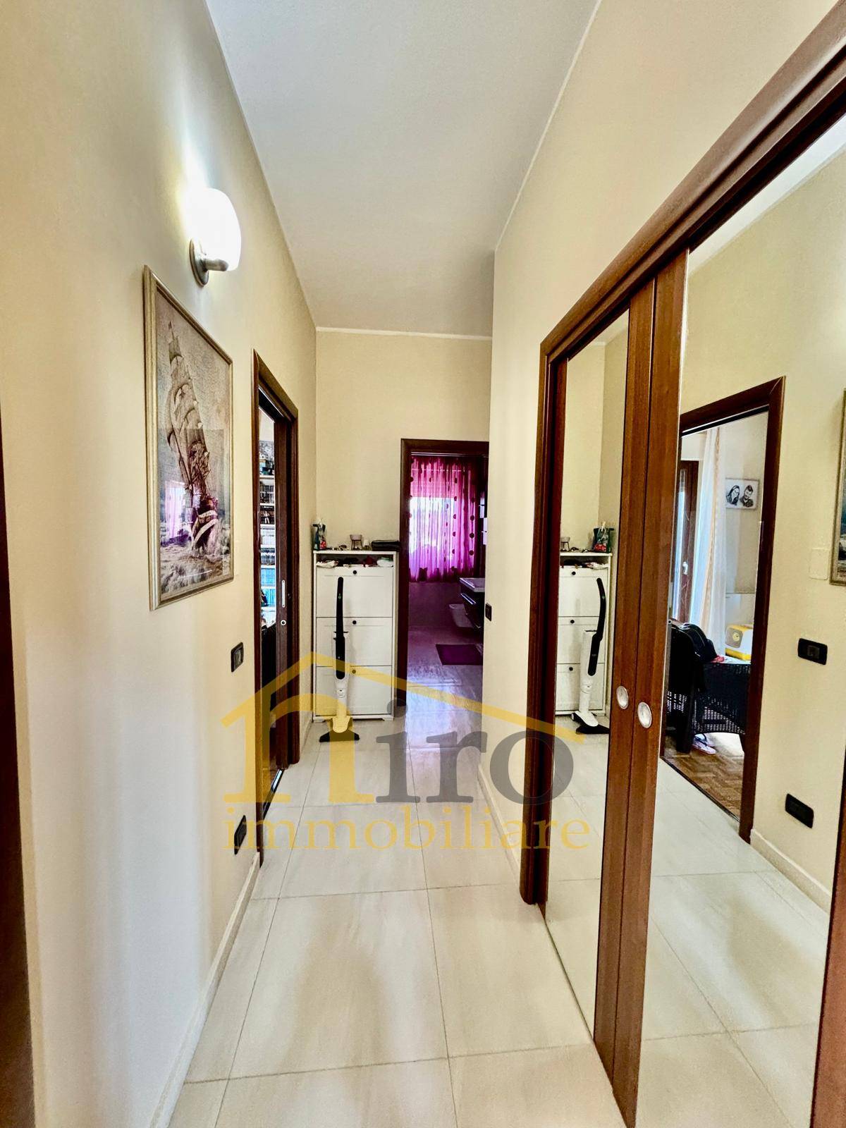 La propriet sita al primo piano cos composta: ingresso /soggiorno spazioso, cucina abitabile con accesso diretto sul terrazzo, disimpegno zona notte con diverse armadiature a muro, due comode camere da letto con annesse cabine armadio, due bagni.