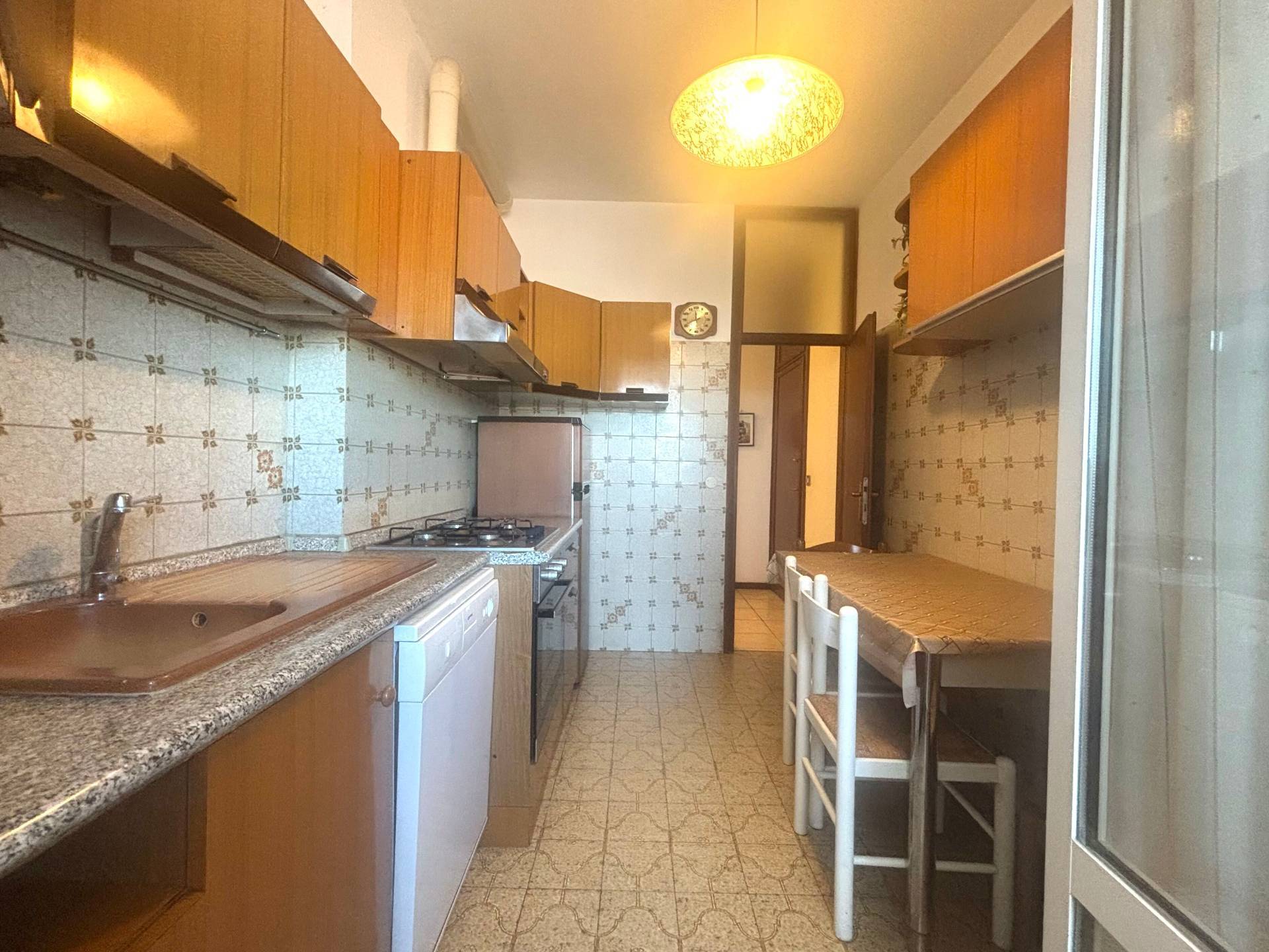 La cucina, abitabile e ben proporzionata, dispone anchessa di accesso al secondo balcone, rendendo gli spazi ancora pi ariosi e vivibili.