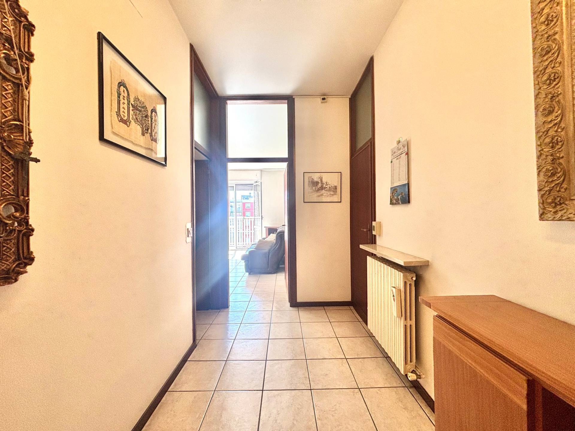 Lappartamento si apre su un comodo e funzionale ingresso che conduce a una luminosa e spaziosa zona living con balcone.