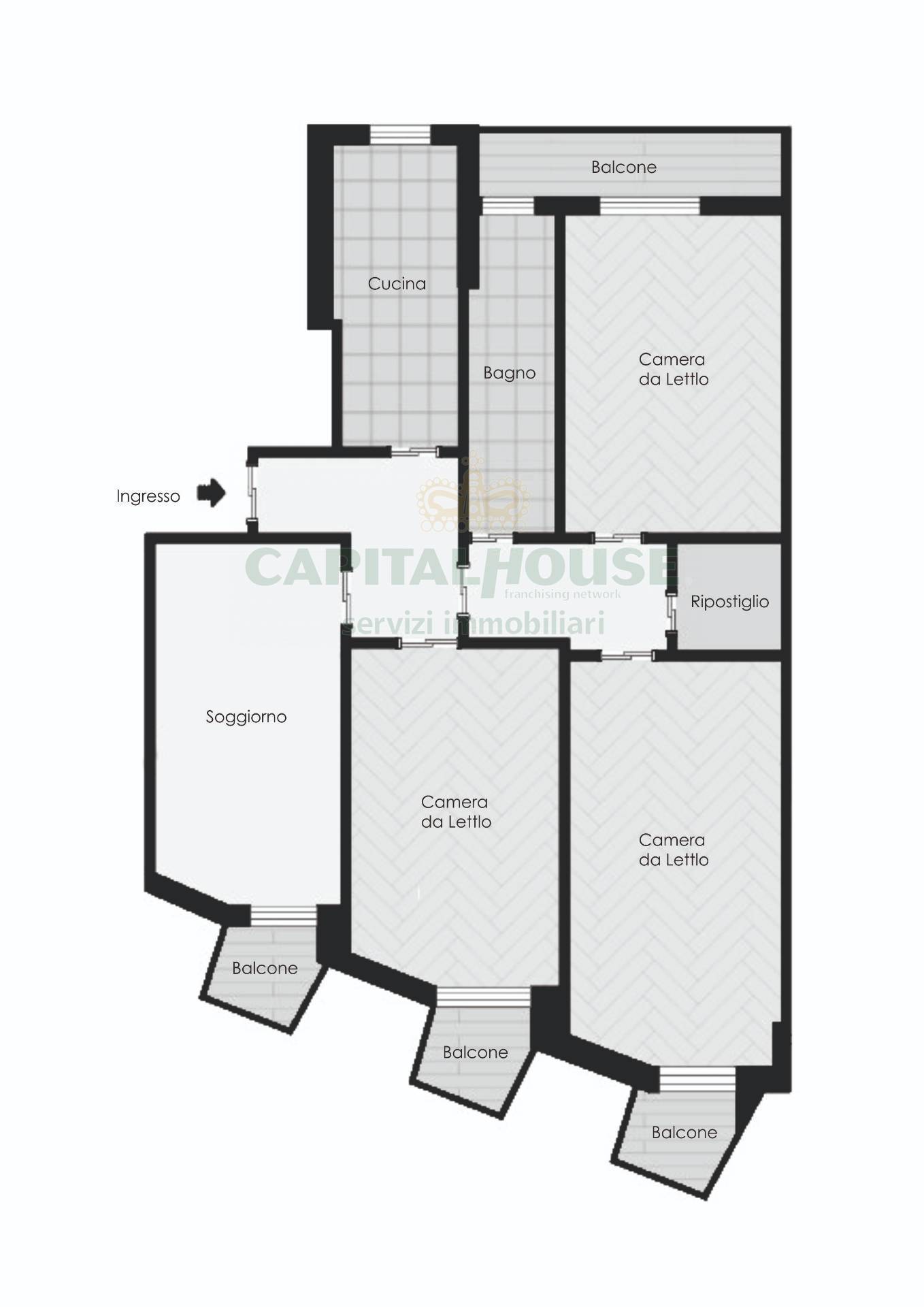 Caratteristiche dell'immobile: Ingresso su disimpegno Cucina semi abitabile Soggiorno Tre camere da letto Bagno finestrato con doccia e vasca Ripostiglio Cantina al piano seminterrato La doppia esposizione e i quattro balconi garantiscono luminosit in tutti gli ambienti durante lintera giornata.