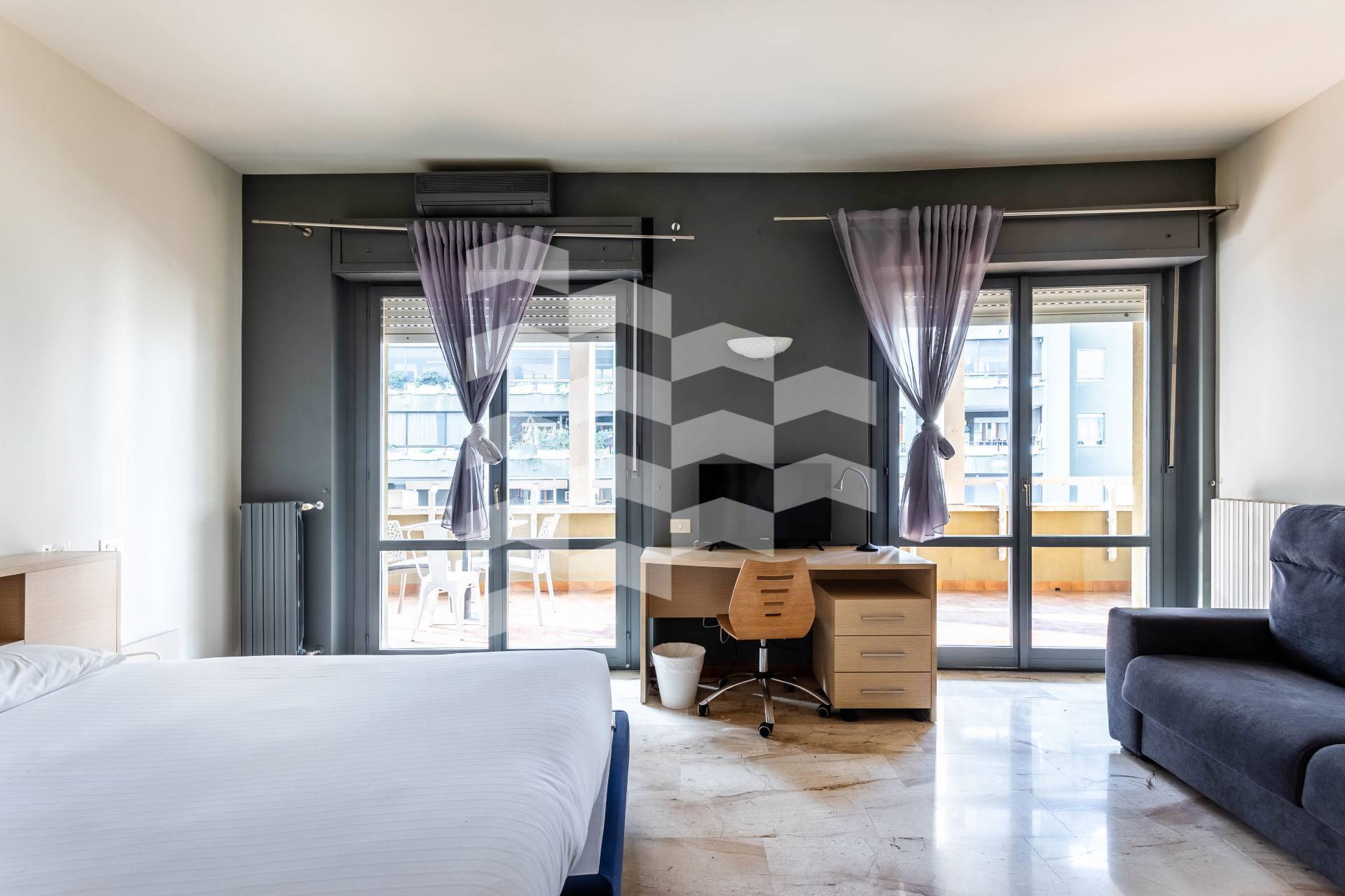 L'immobile, completamente arredato, composto da ingresso, cucinotto, una cameretta ( o soggiorno ) con accesso all'ampio terrazzo coperto, una seconda camera da letto anche questa con accesso allo sfogo esterno ed un bagno.