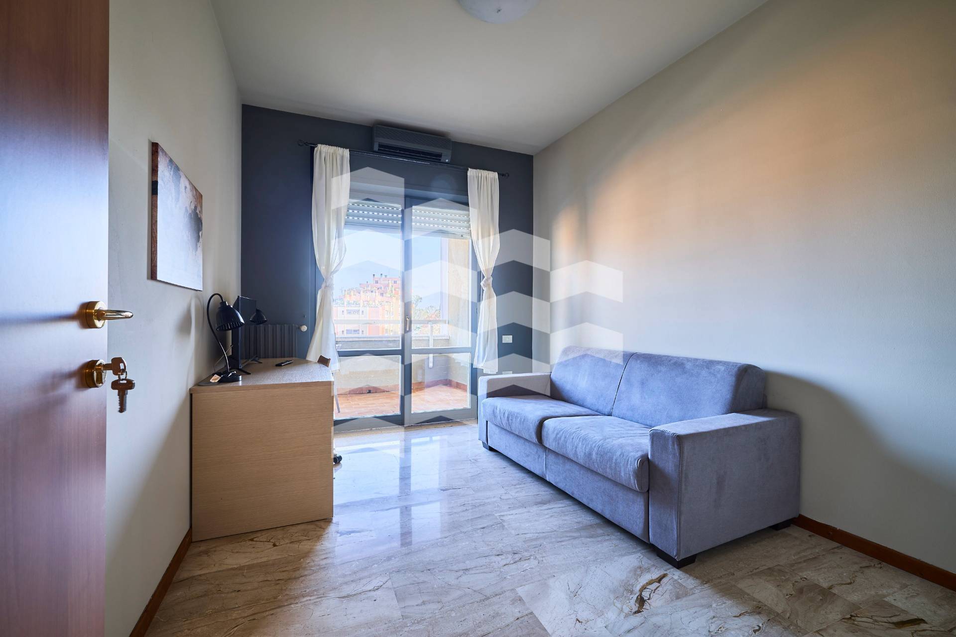 L'immobile, completamente arredato, composto da ingresso, soggiorno con accesso al terrazzo, cucina, una camera da letto matrimoniale anche questa con accesso al terrazzo coperto, disimpegno ed ampio bagno con vasca.