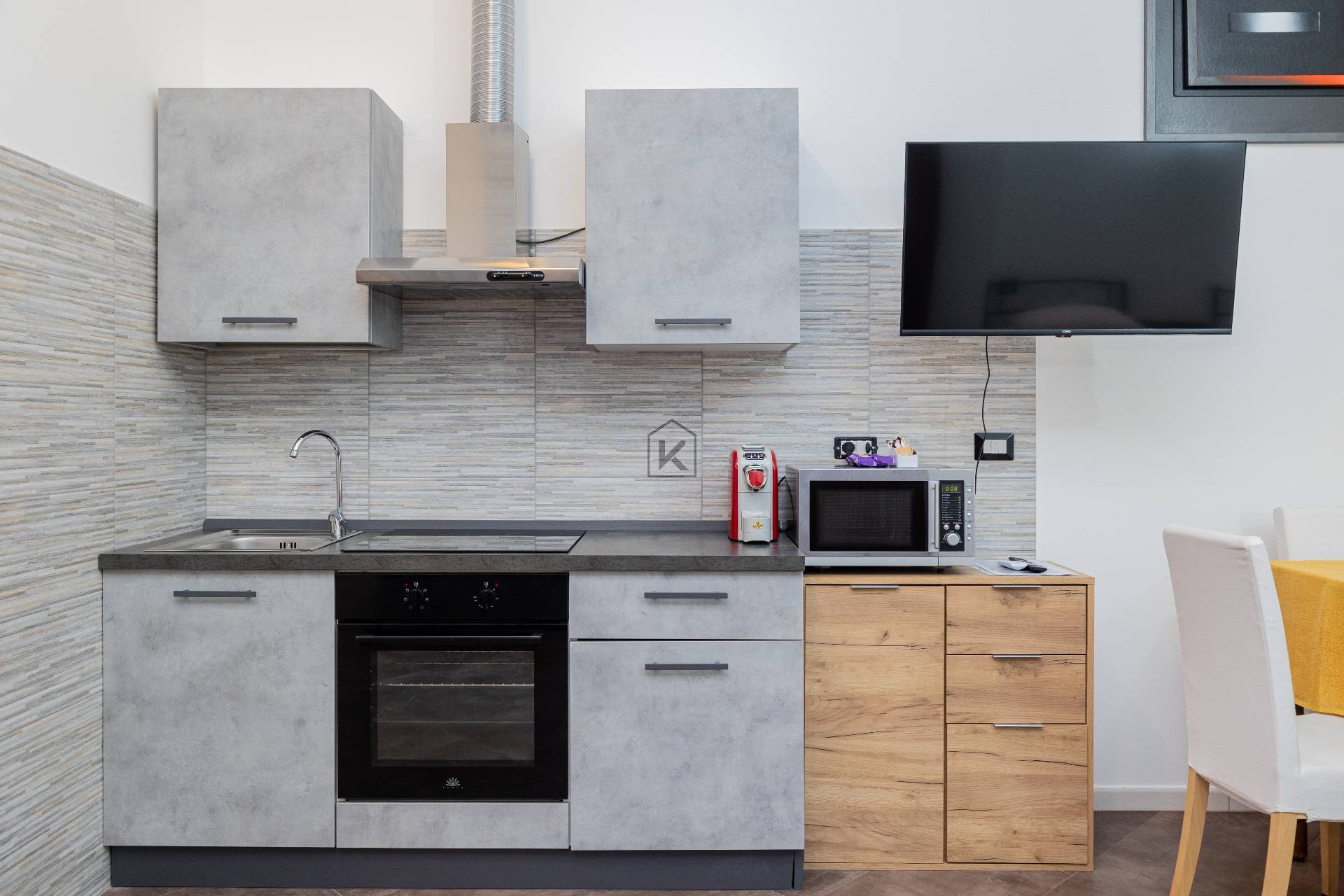 Limmobile si sviluppa in un ampio ambiente open space sapientemente organizzato con cucina a vista.