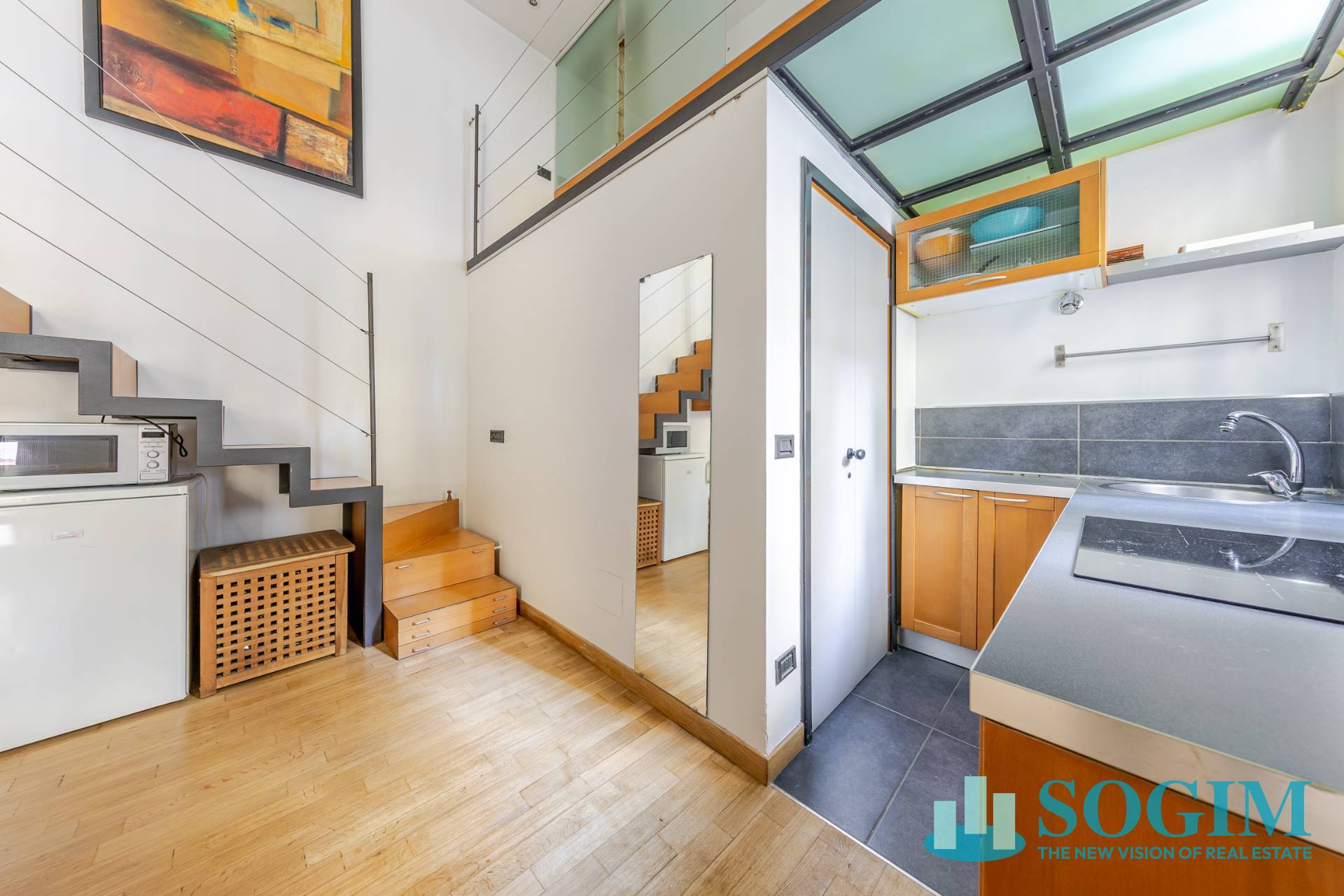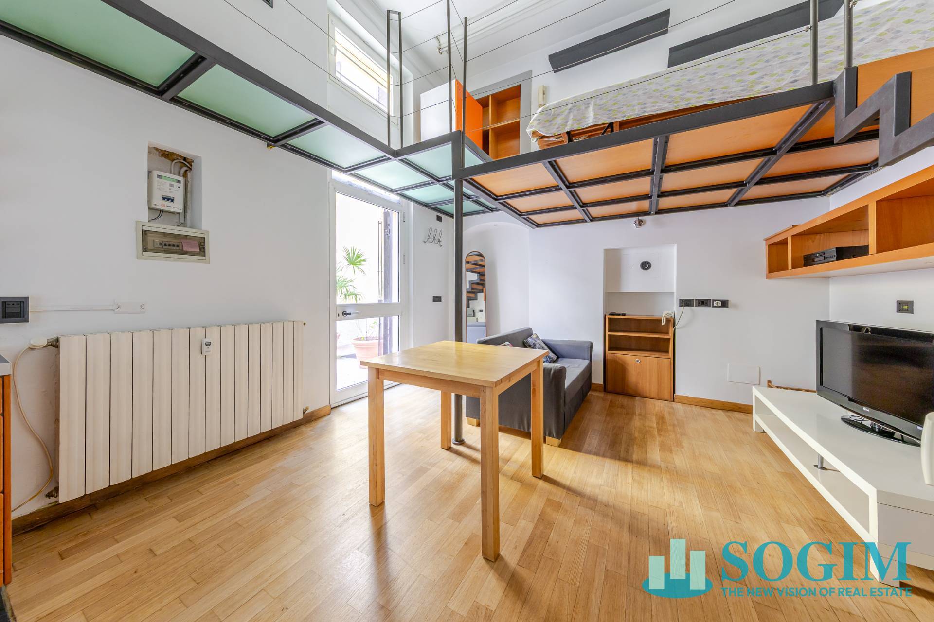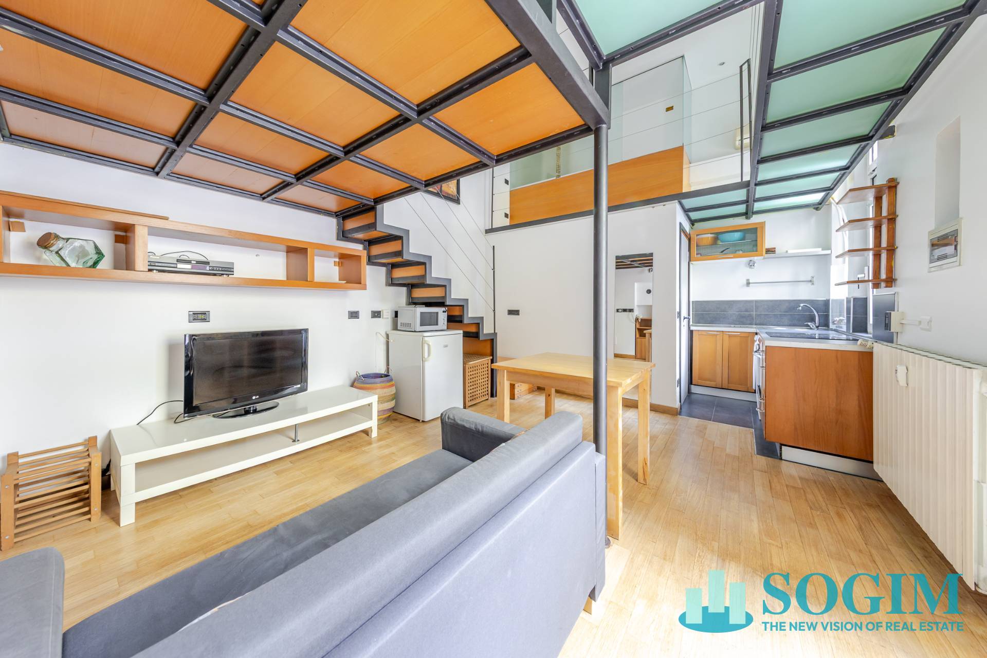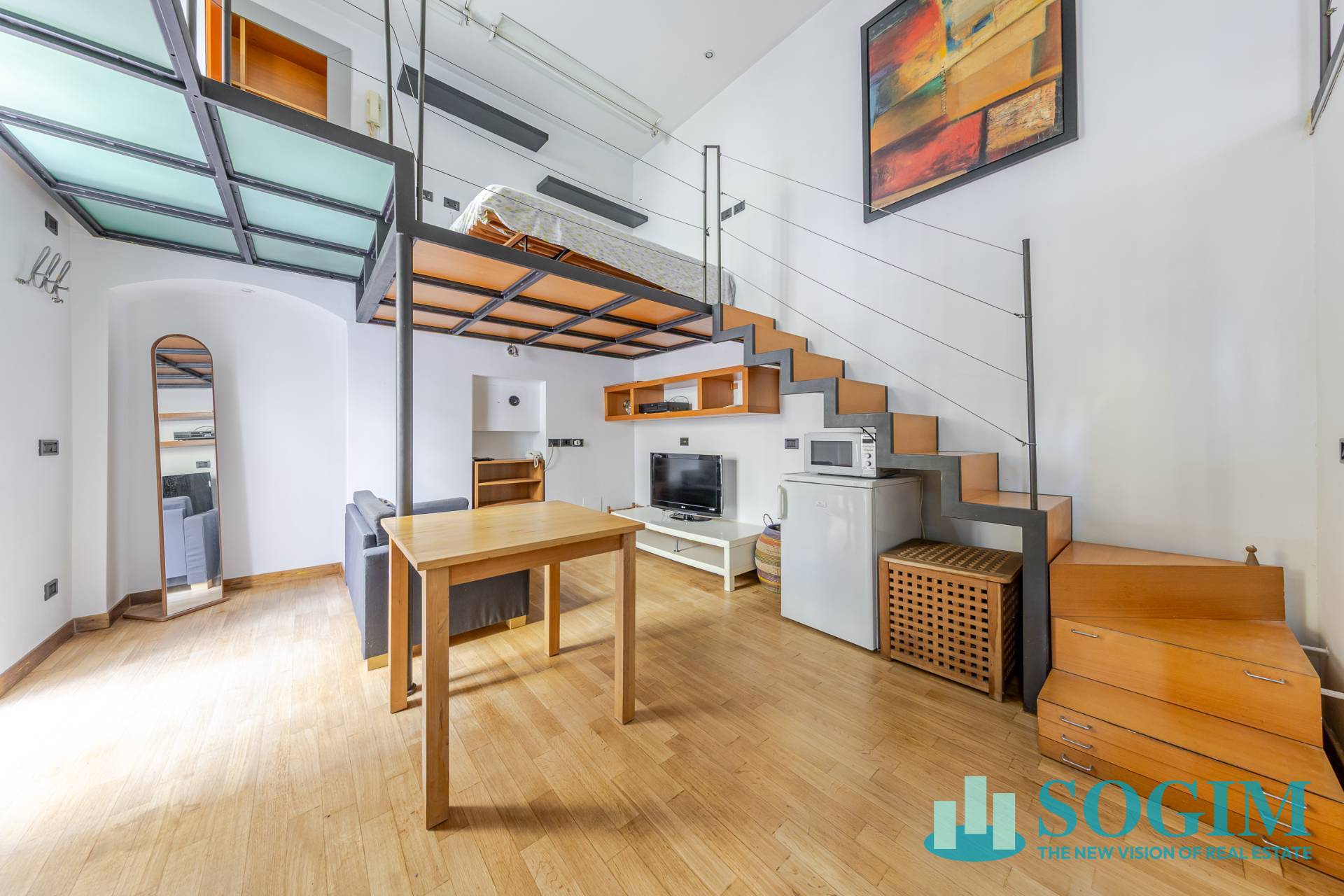 Zona Corso Vercelli/Via Washington Bilocale in vendita in Via Wasington In palazzo d'epoca di inizio secolo, nel cuore di via Washington, proponiamo in vendita luminoso bilocale sito al piano terra, composto da ingresso, zona living con angolo cottura, bagno con doccia e sanitari sospesi, scala che porta alla zona notte soppalcata.