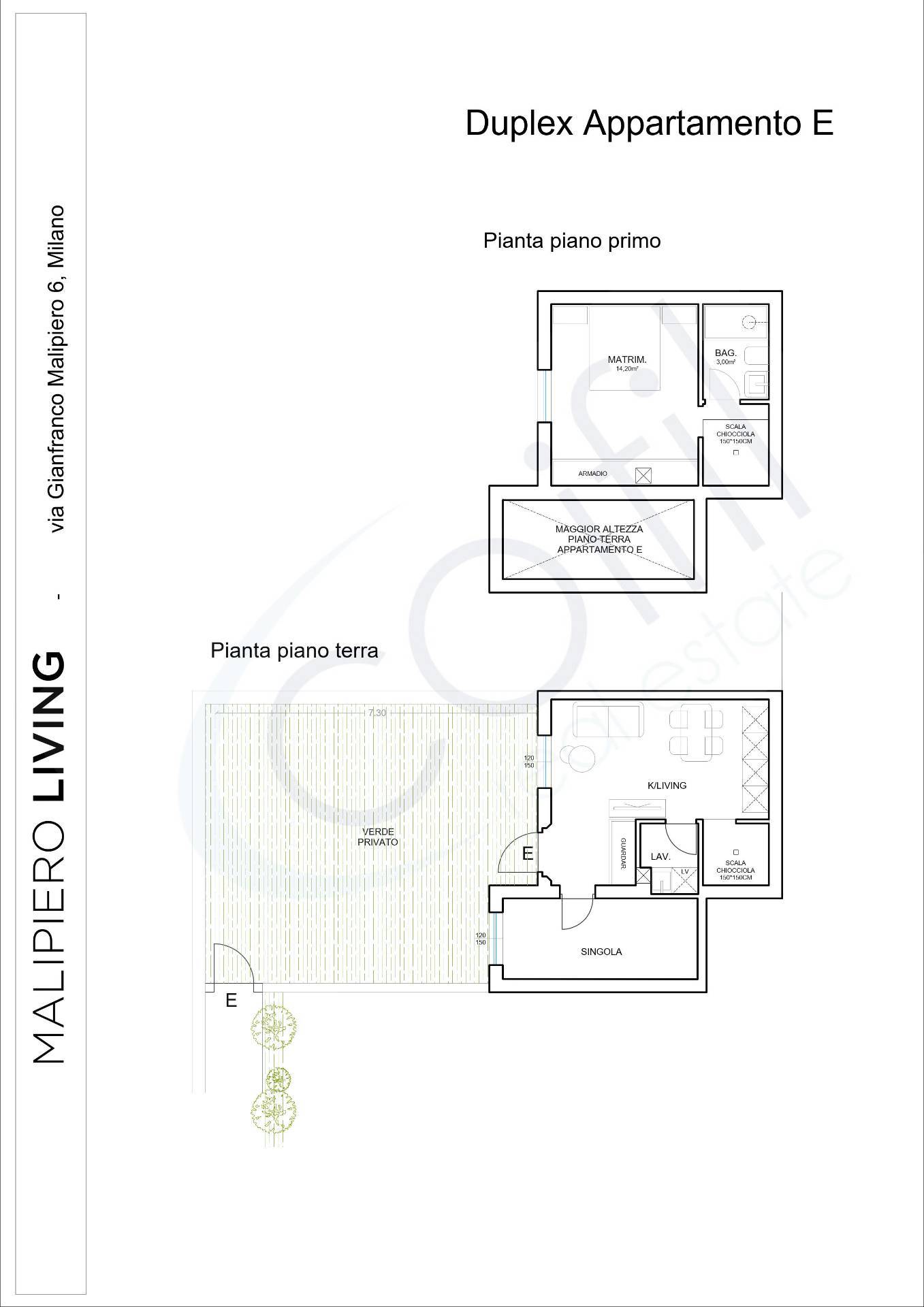 A Milano, in Via Malipiero 6 nel quartiere Taliedo, in fase di realizzazione una nuova residenza in Classe A. Il progetto prevede 14 unit abitative, uniche nel loro genere, dotate di ampi terrazzi e giardini privati, per offrire un modo completamente nuovo di vivere la citt. Proponiamo in vendita TRILOCALE su 2 livelli con GIARDINO, composto al piano terra da ingresso, soggiorno con cucina a vista, cameretta, lavanderia e ampio giardino di oltre 43 mq; una scala chiocciola collega al primo piano dove si trova l'ampia camera matrimoniale ed il bagno.