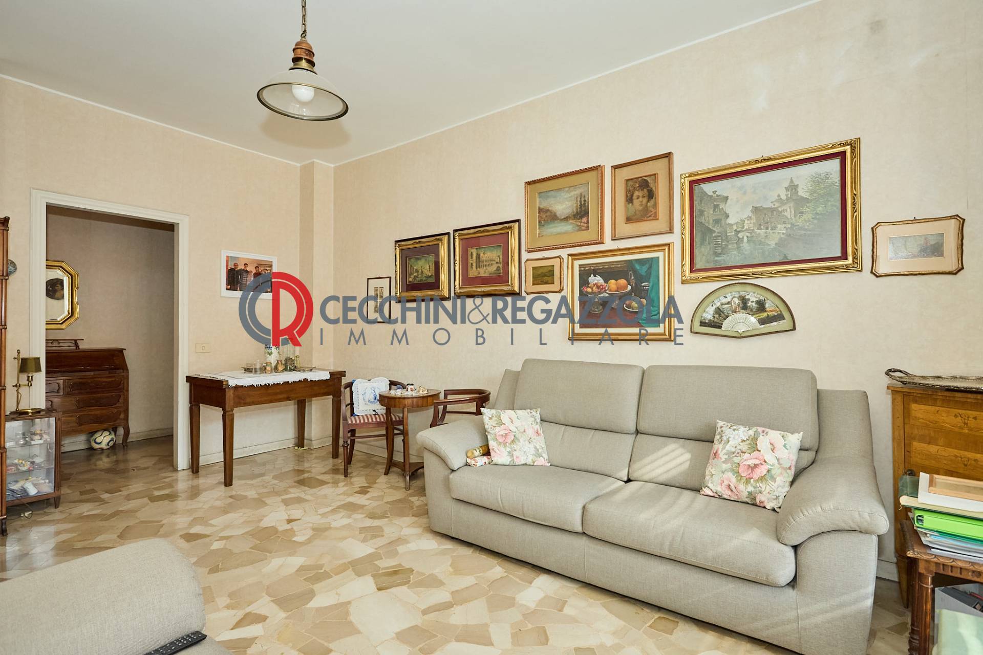 In stabile signorile degli anni 60, ben curato e dotato di ascensore e servizio di portineria mezza giornata, proponiamo un ampio trilocale di 108 mq al primo piano.