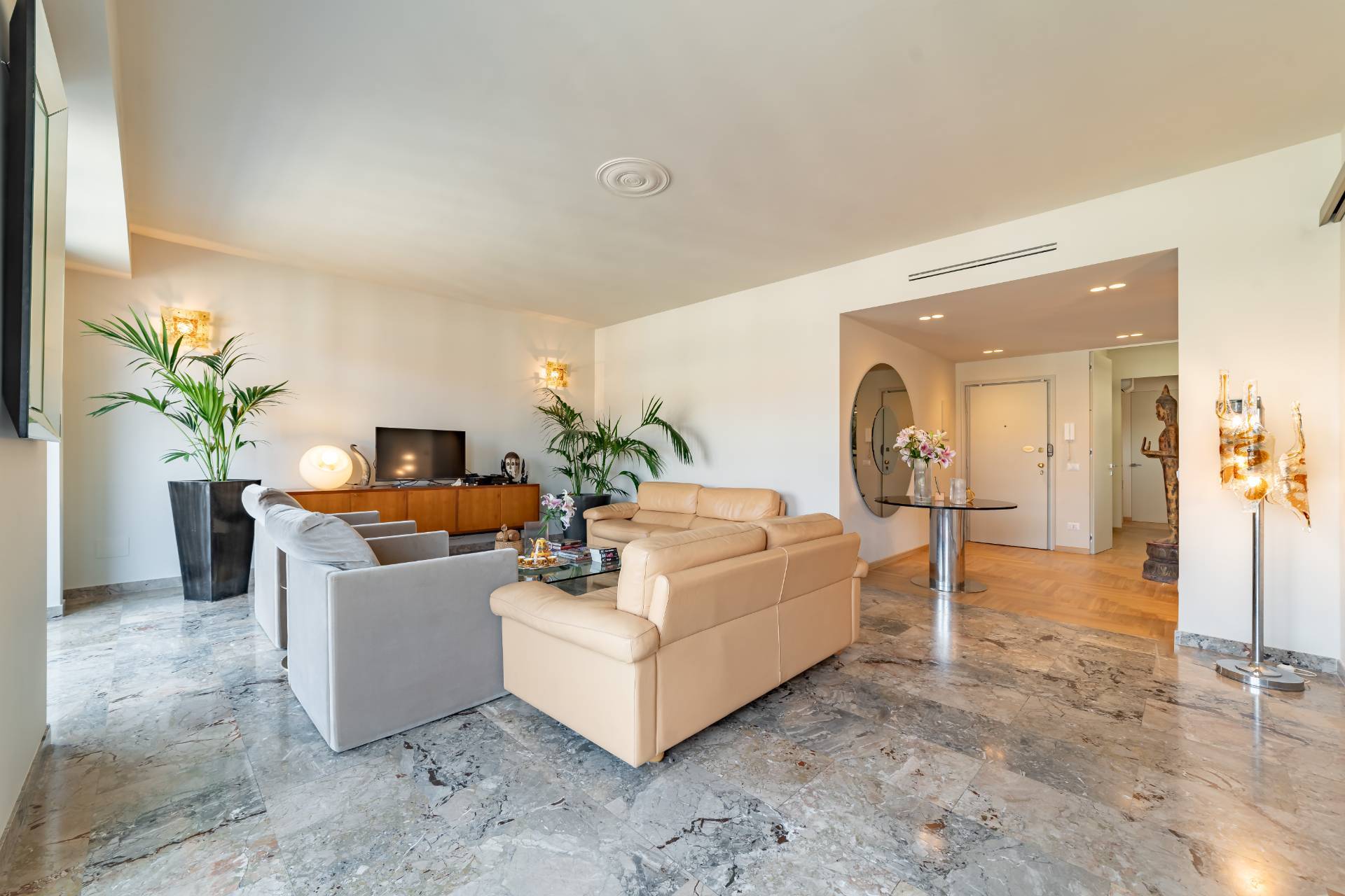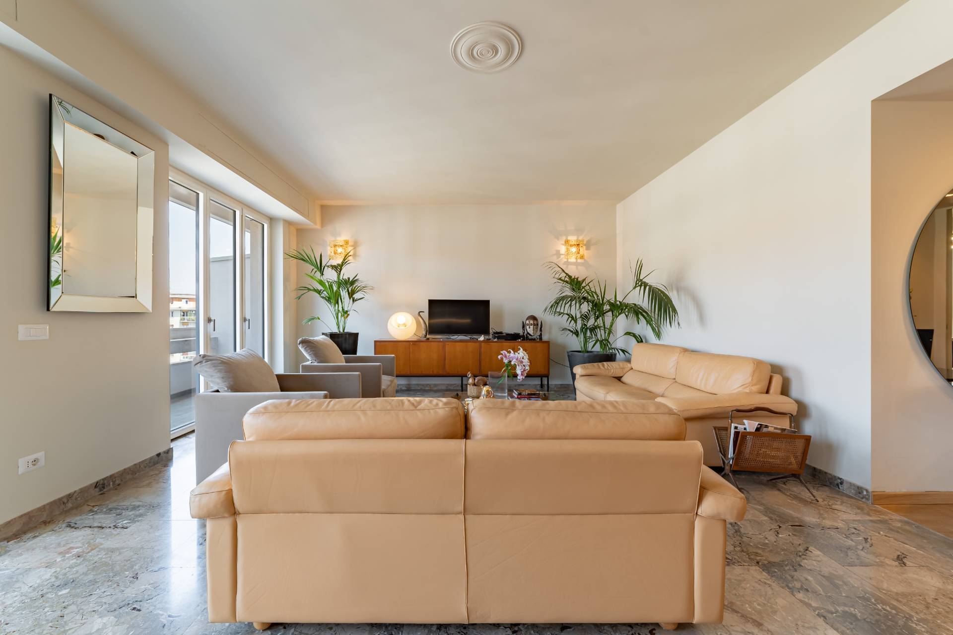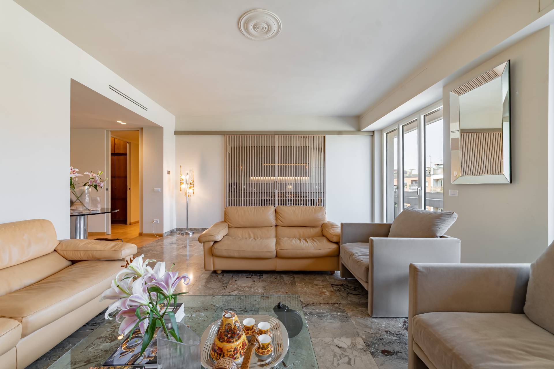 Si compone di tre camere, tre bagni, due cucine e un ampio balcone.