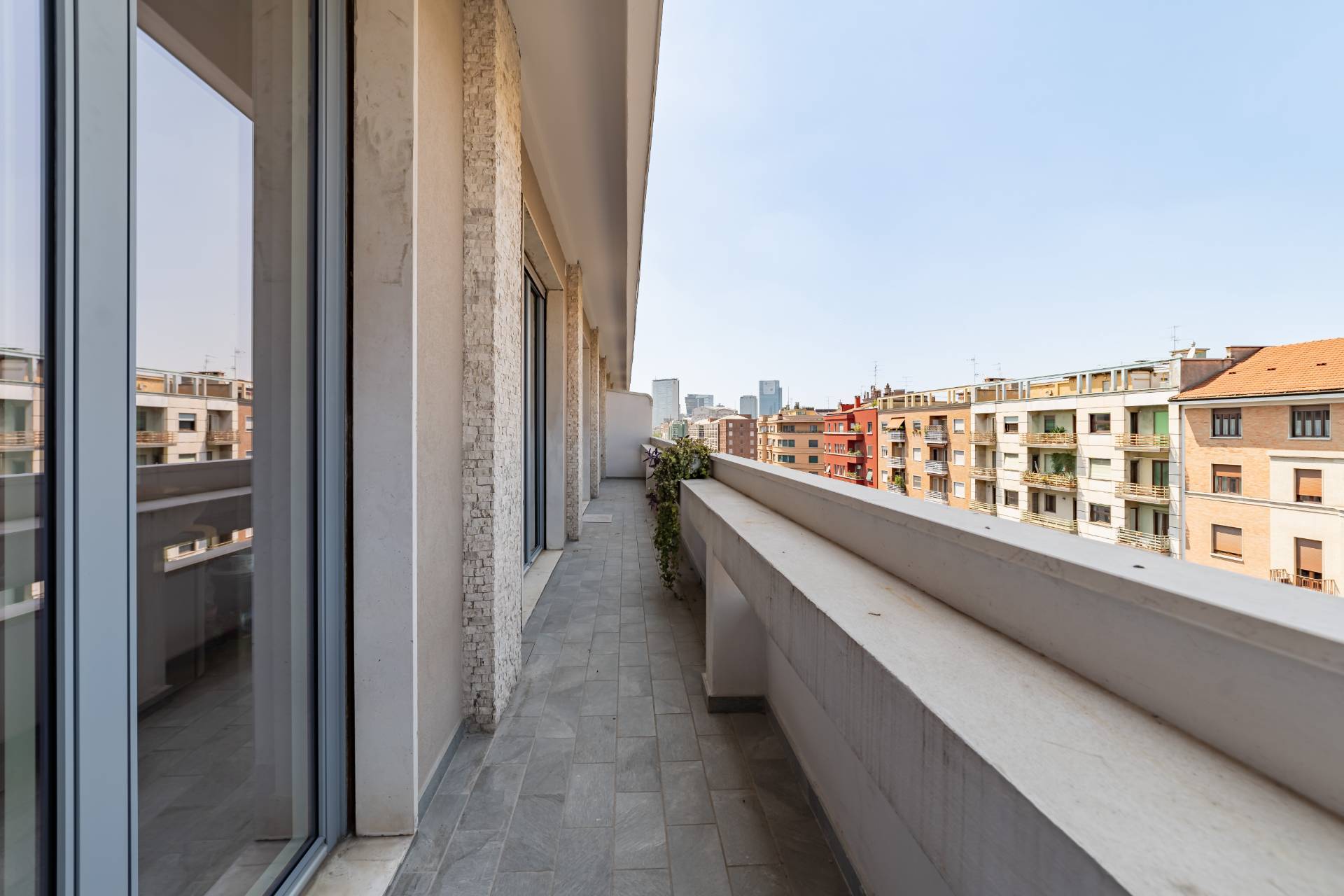 L'immobile proposto all'ottavo e ultimo piano, internamente l'appartamento, ispirato all'estetica di Frank Lloyd Wright, sviluppato su un unico piano e presenta una disposizione degli spazi ottimale.