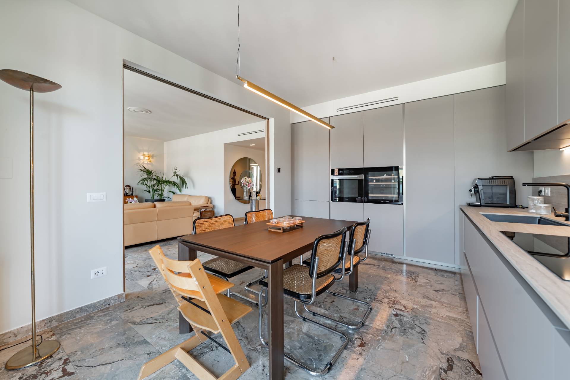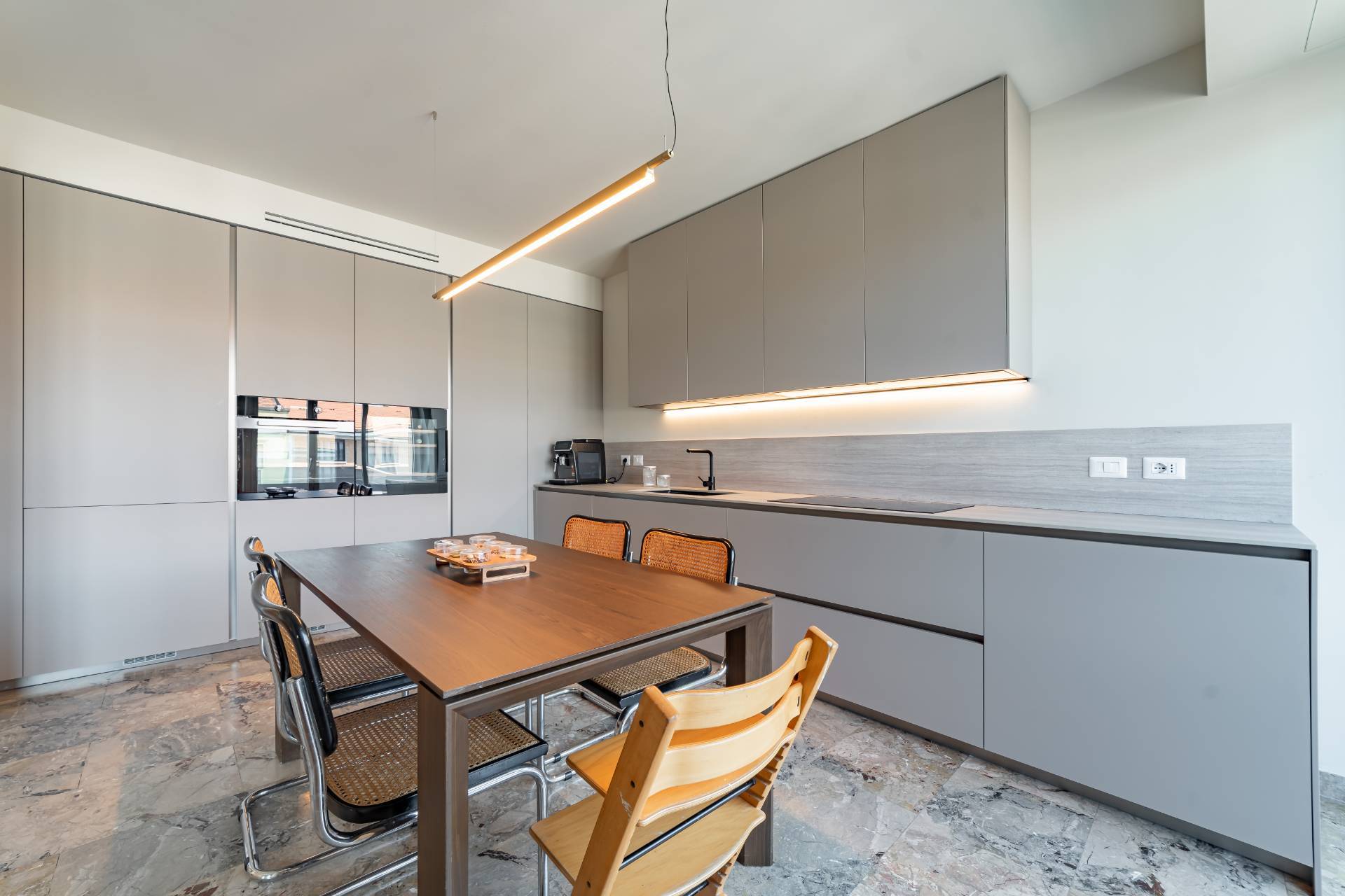 La cucina firmata Arrital con elettrodomestici Miele e Smeg. La casa venduta arredata, con possibilit di concordare i mobili da mantenere.