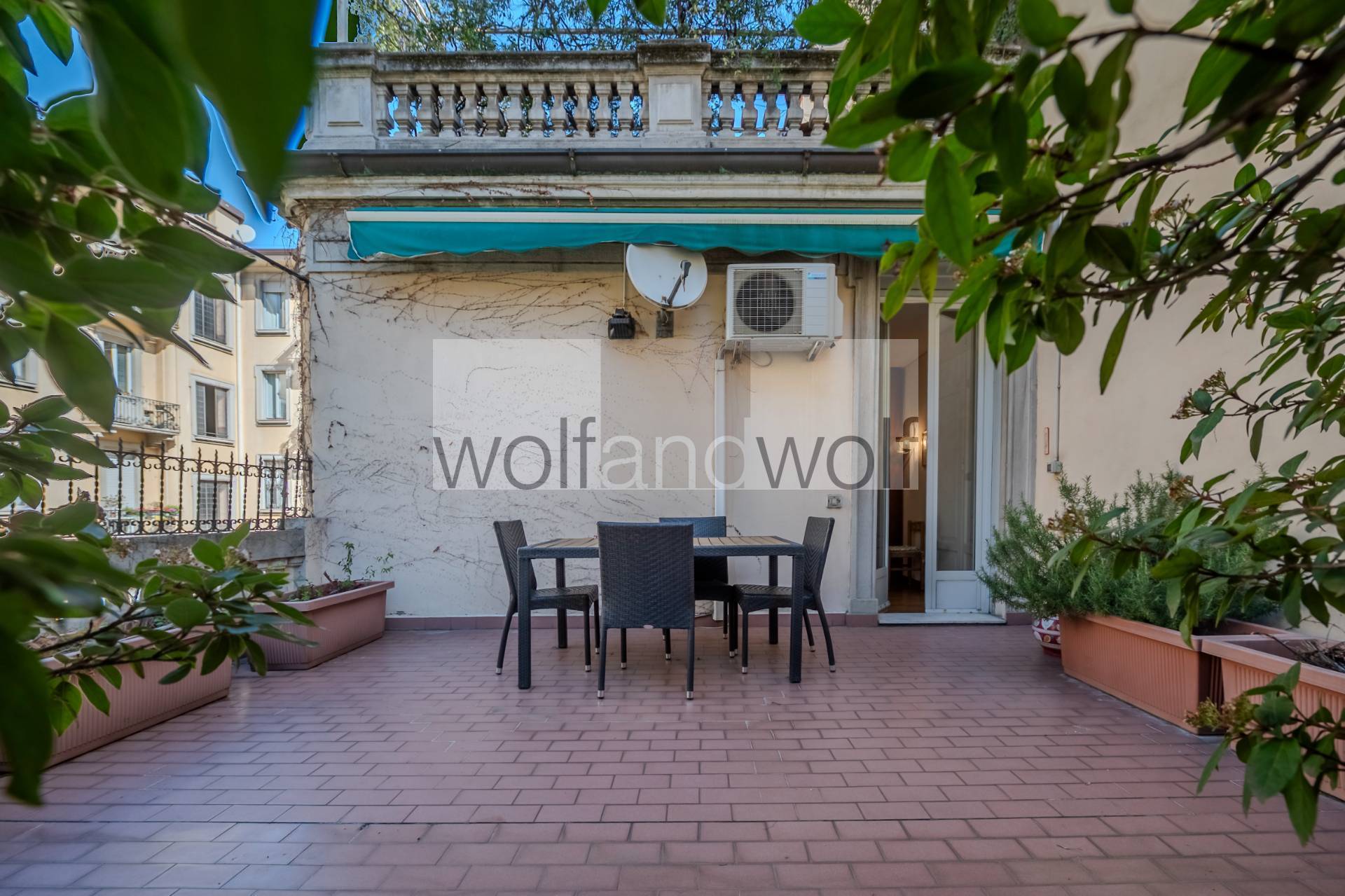 A rendere questa dimora davvero unica il terrazzo, un ambiente prezioso e introvabile in questa zona, affacciato sul silenzioso cortile interno e caratterizzato da assoluta privacy e tranquillit: uno spazio perfetto per creare un'area conviviale con tavolo da pranzo e arredi outdoor.