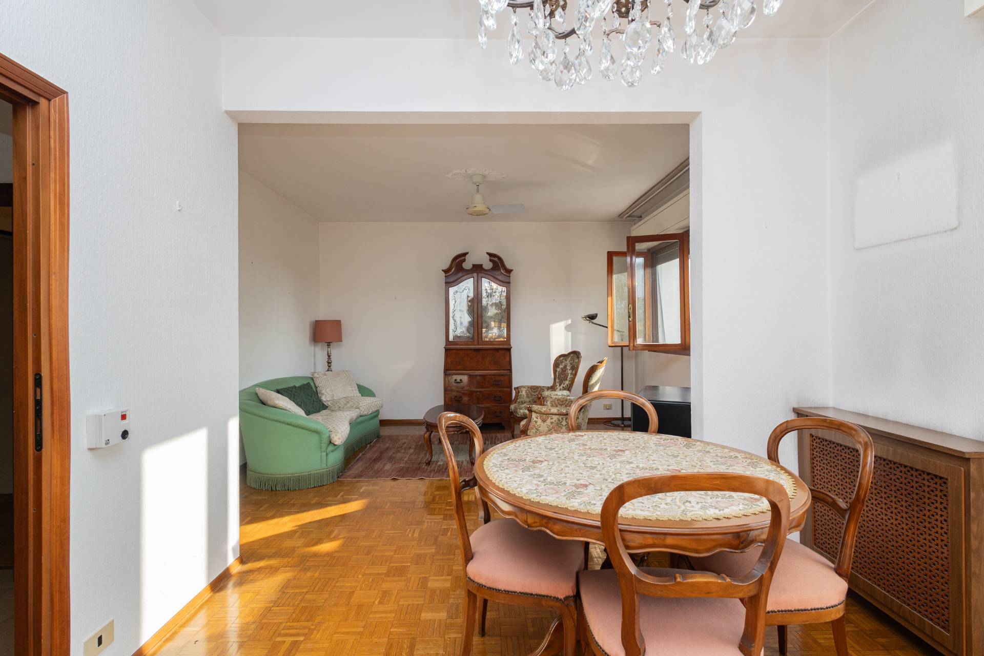 L'immobile grazie alla sua doppia esposizione, risulta luminoso ed arieggiato, all'interno si presenta in buone condizioni, con infissi in legno doppio vetro, pavimenti in parquet ad eccezione dei bagni e porta blindata.