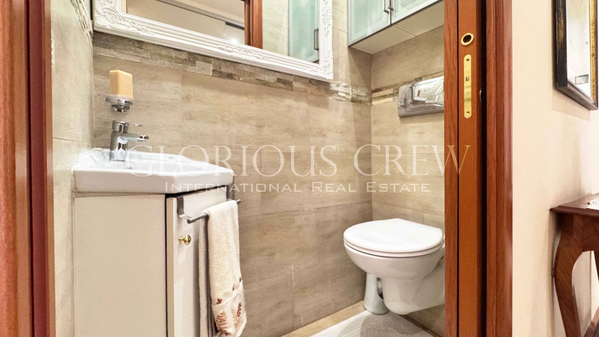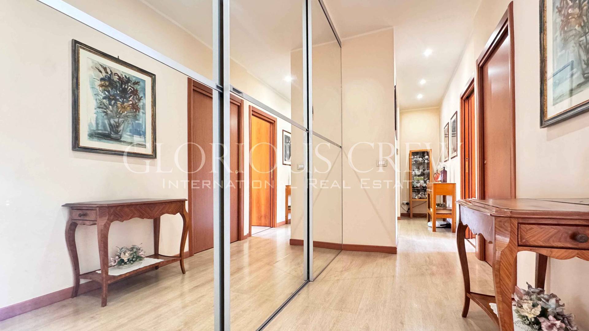 Tra le dotazioni troviamo porta blindata, impianto di aria condizionata, infissi con doppi vetri, tapparelle elettriche e riscaldamento centralizzato a pavimento.