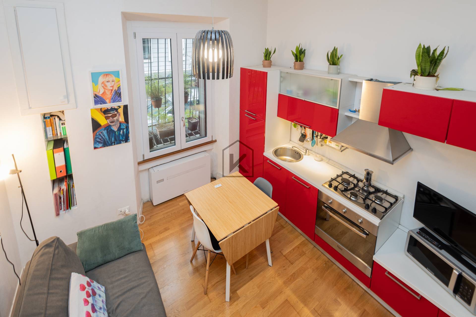 Nella caretteristica via Antonio Kramer in contesto d'epoca Kers immobiliare propone in vendita grazioso monolocale composto da: ingresso su disimpegno, zona soggiorno/notte con cucina a vista e bagno con doccia.