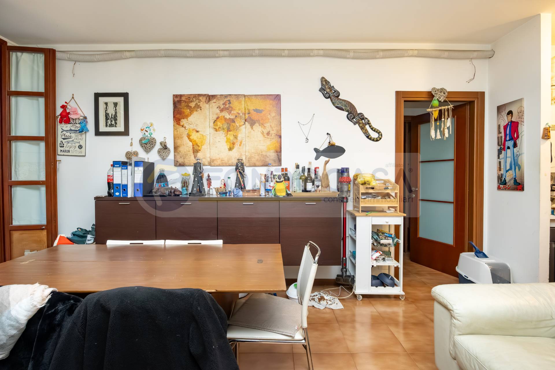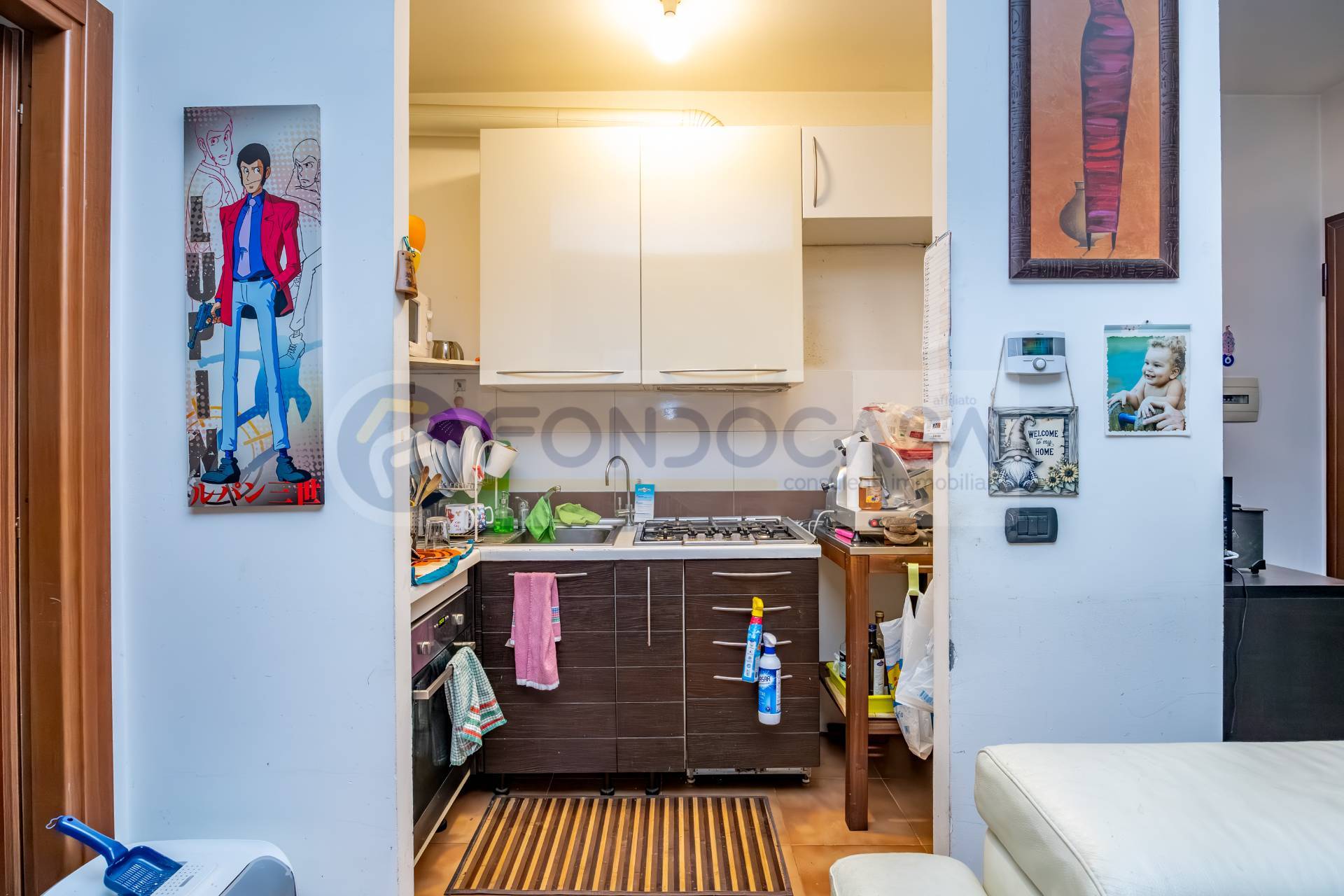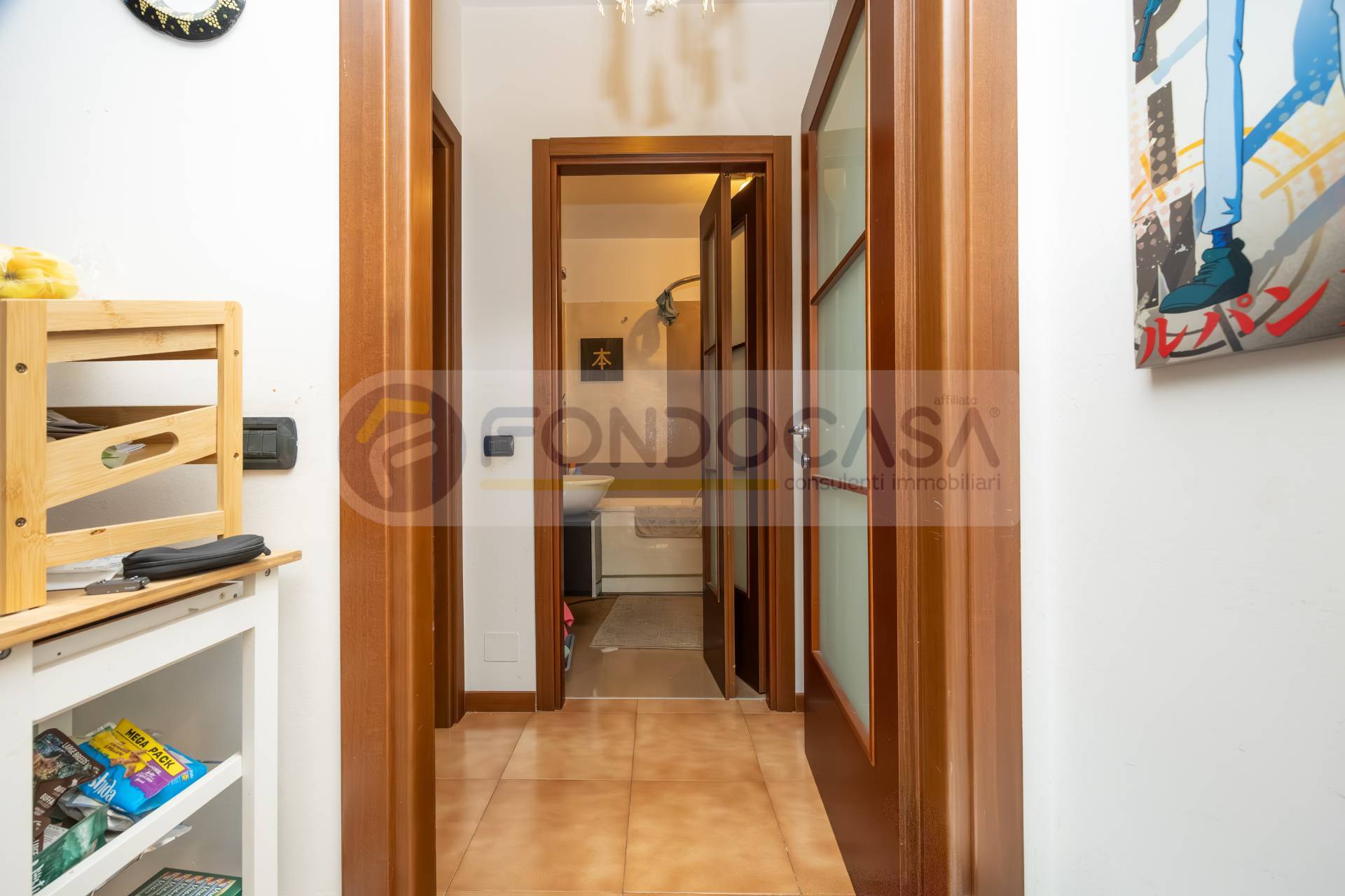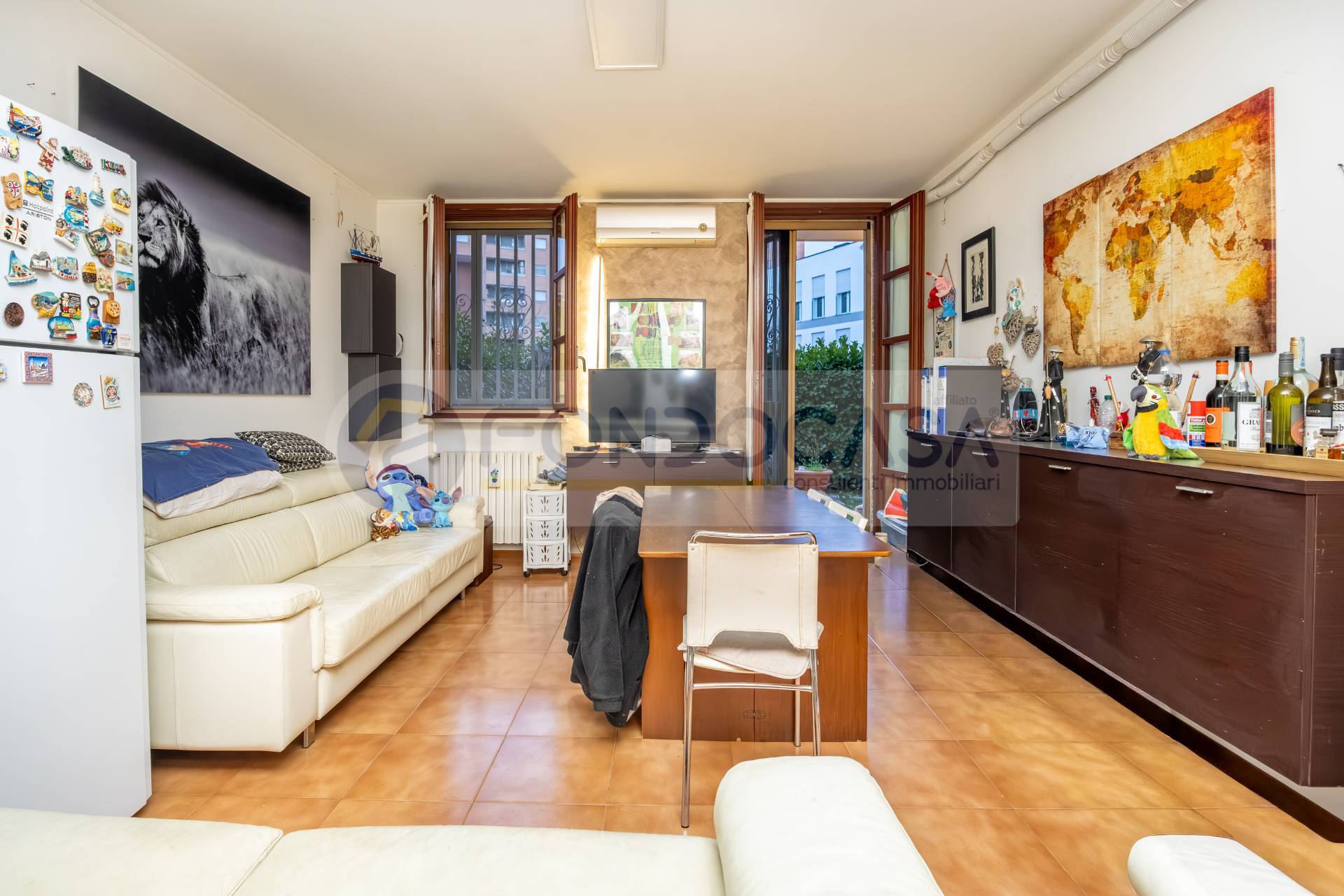 L'appartamento composto da uno spazioso soggiorno con un angolo cottura separato, disimpegno che porta a una camera matrimoniale di comoda metratura ed infine un bagno cieco, dotato di impianto ad aerazione forzata.