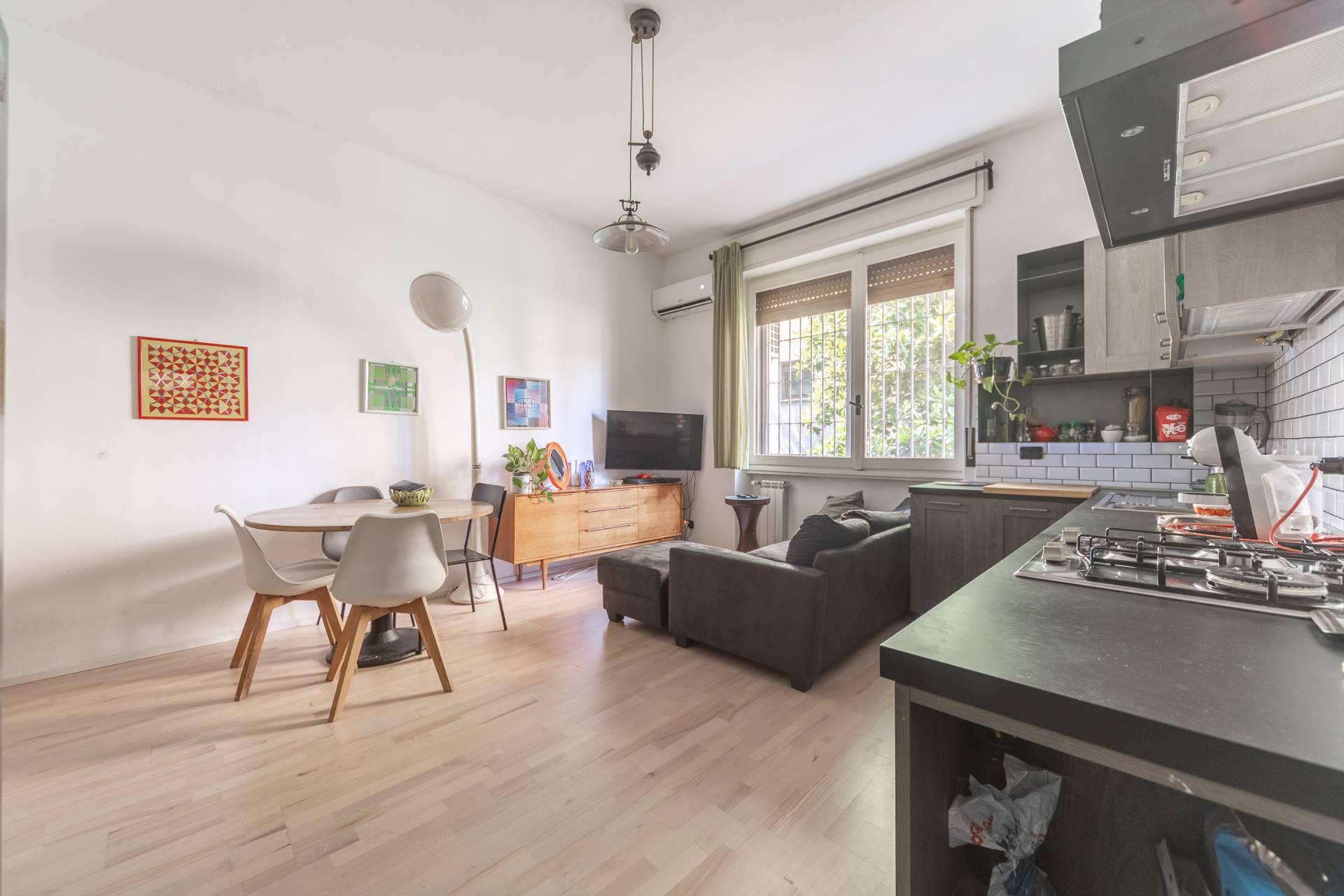 Riscaldamento centralizzato a termo-valvole, infissi in legno-vetro, pavimentazione in parquet e ceramica, porta blindata, impianto aria condizionata.