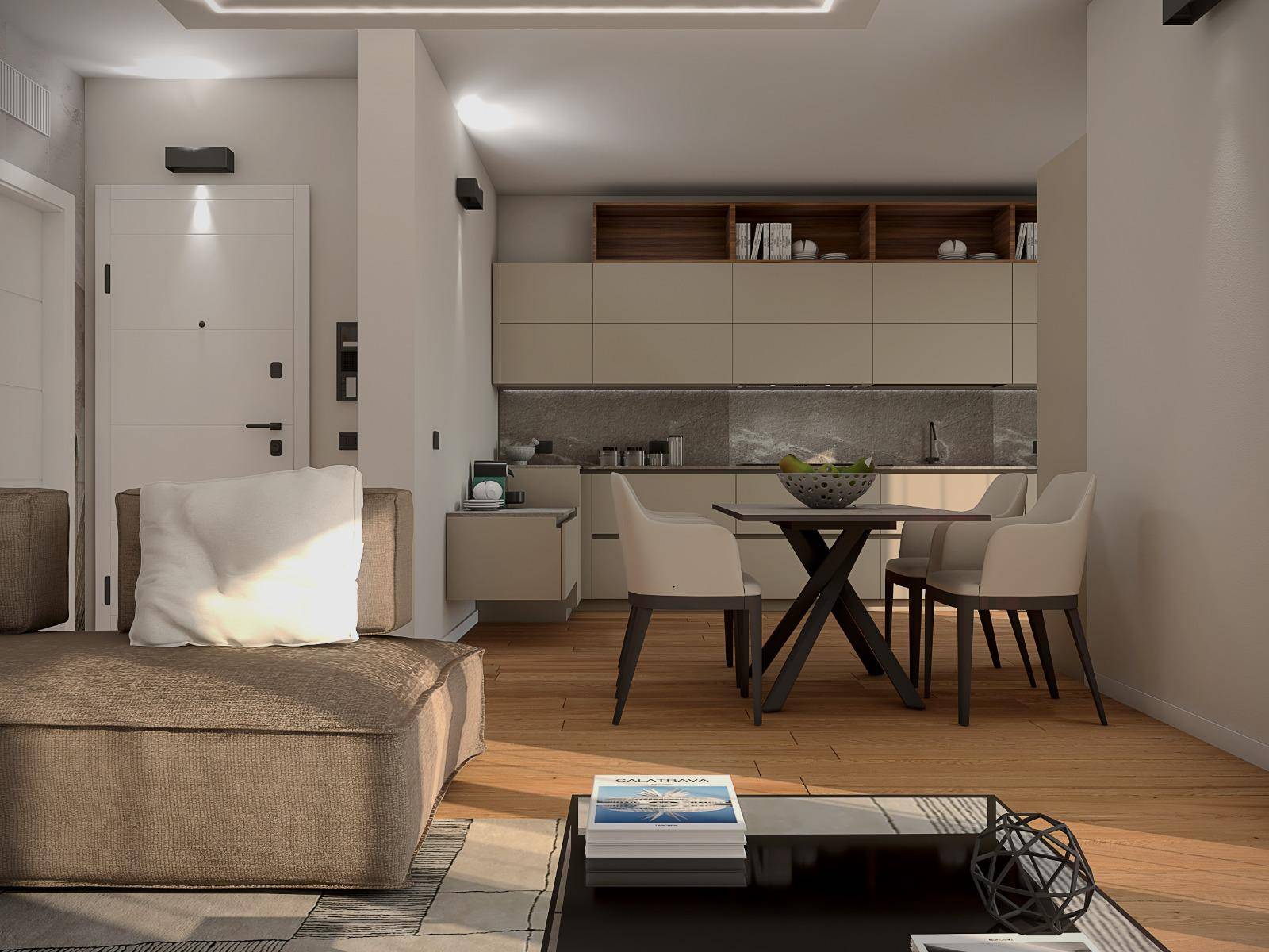Uno studio accurato degli spazi interni permetter di godere di un luminoso e confortevole soggiorno dove ricevere i propri ospiti e dal quale accedere ad unampia cucina abitabile, in cui preparare piatti prelibati da gustare con amici e familiari.