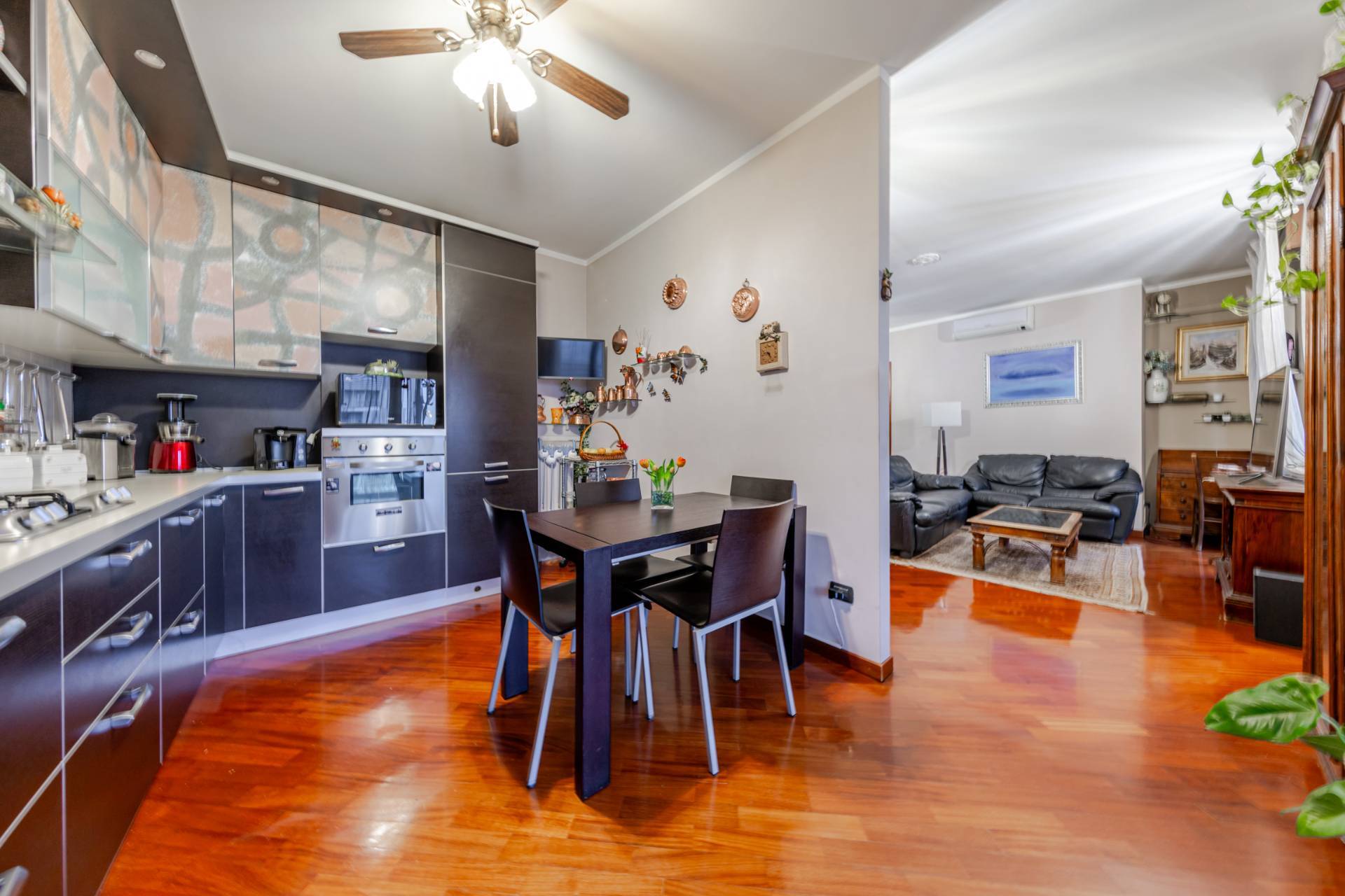 Riscaldamento autonomo, infissi in legno doppi vetri, pavimentazione in parquet e ceramica, impianto di aria condizionata, videocitofono, porta blindata.