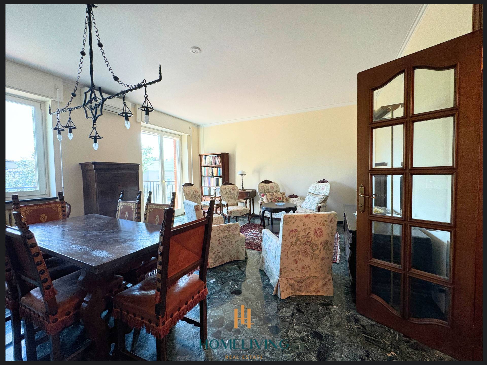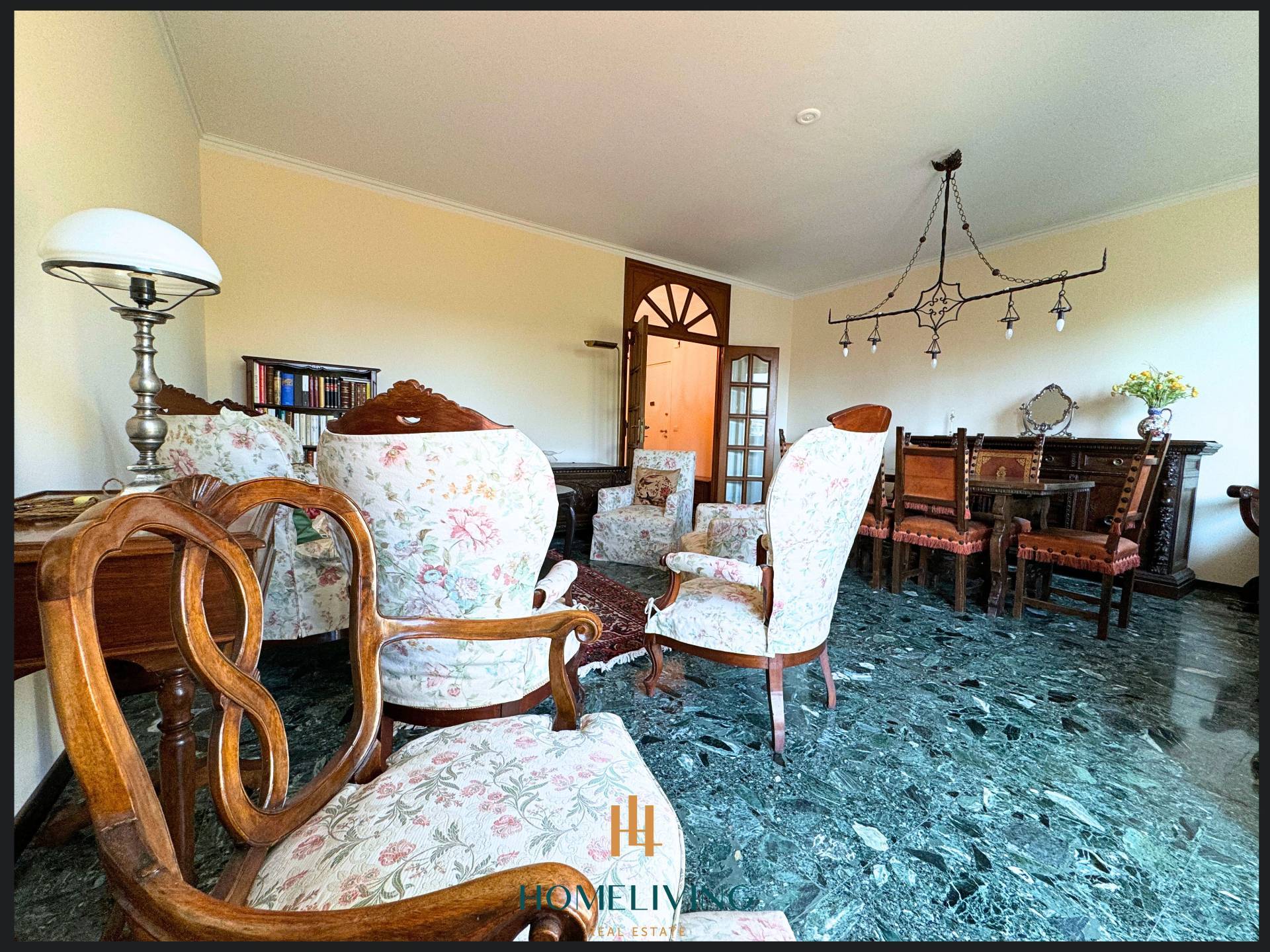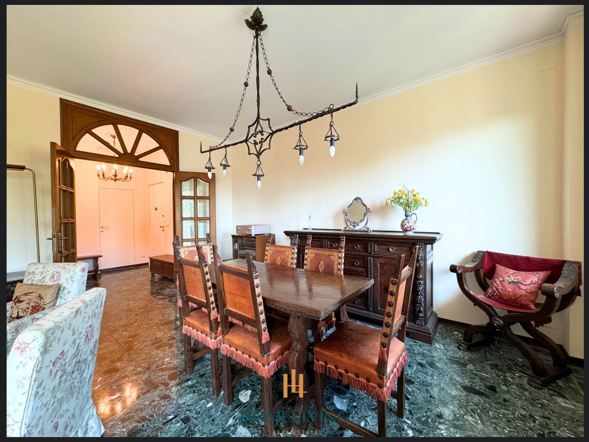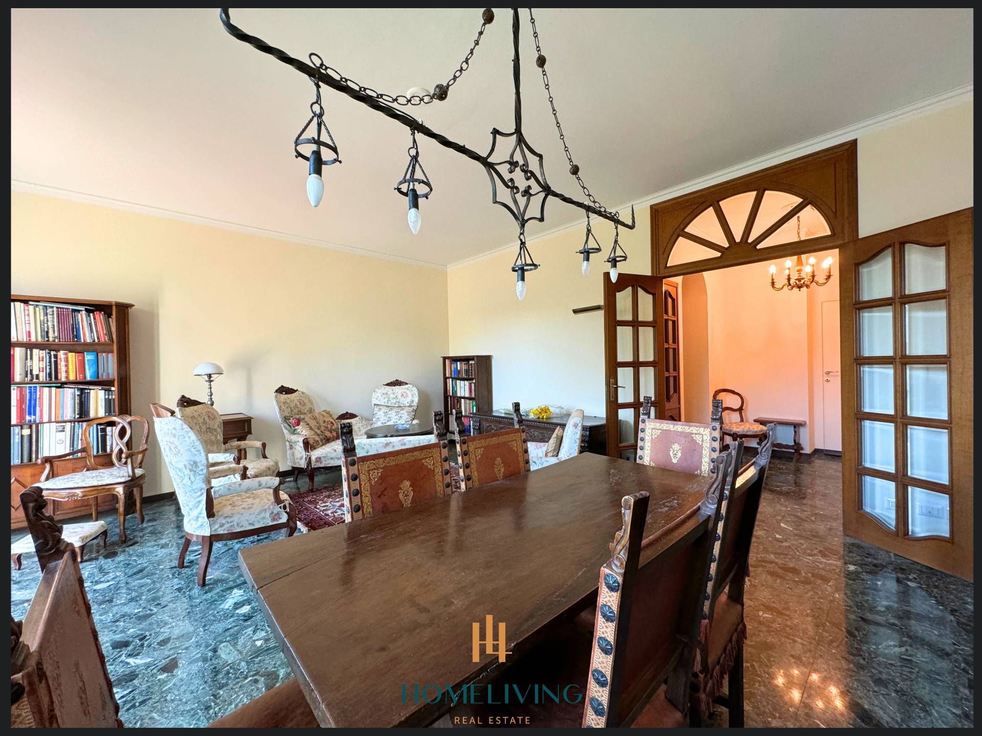 L'immobile presenta eleganti finiture, dalla pavimentazione in marmo alle porte rasomuro.