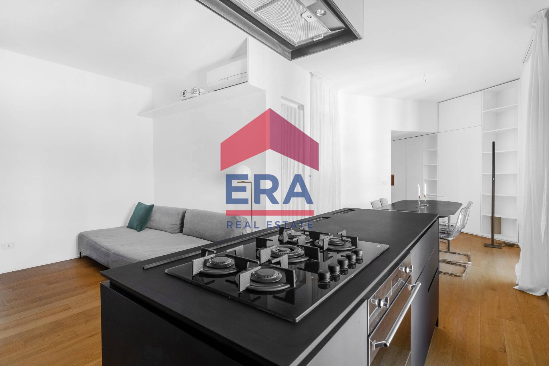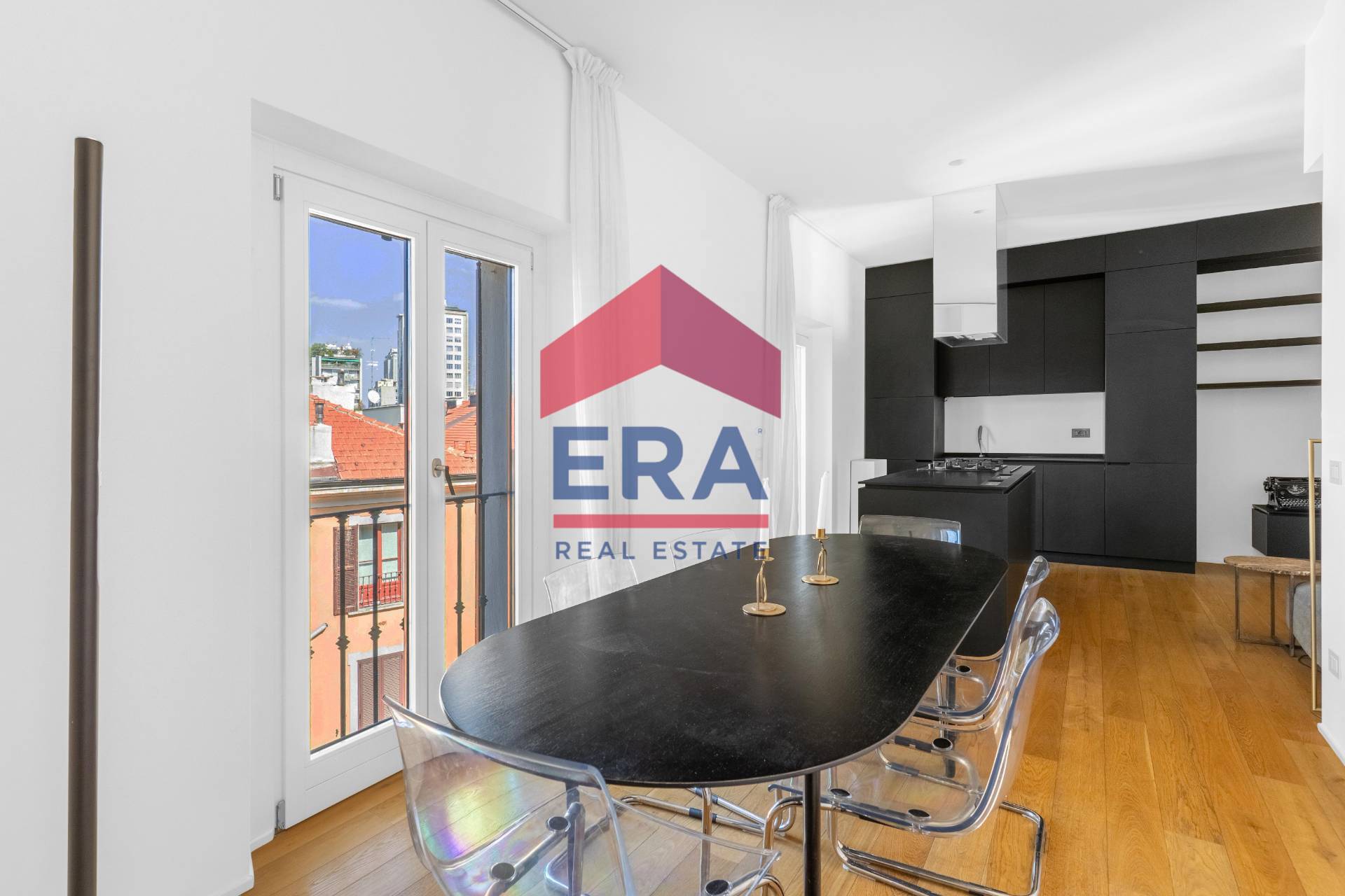 Lappartamento, dotato di aria condizionata e di tutti gli arredi inclusi nella vendita, caratterizzato da spazi ottimizzati, grande luminosit e viste uniche: da un lato il nuovo skyline di Viale della Liberazione e il Diamante, dallaltro i grattacieli della Regione che si stagliano oltre il cortile interno.