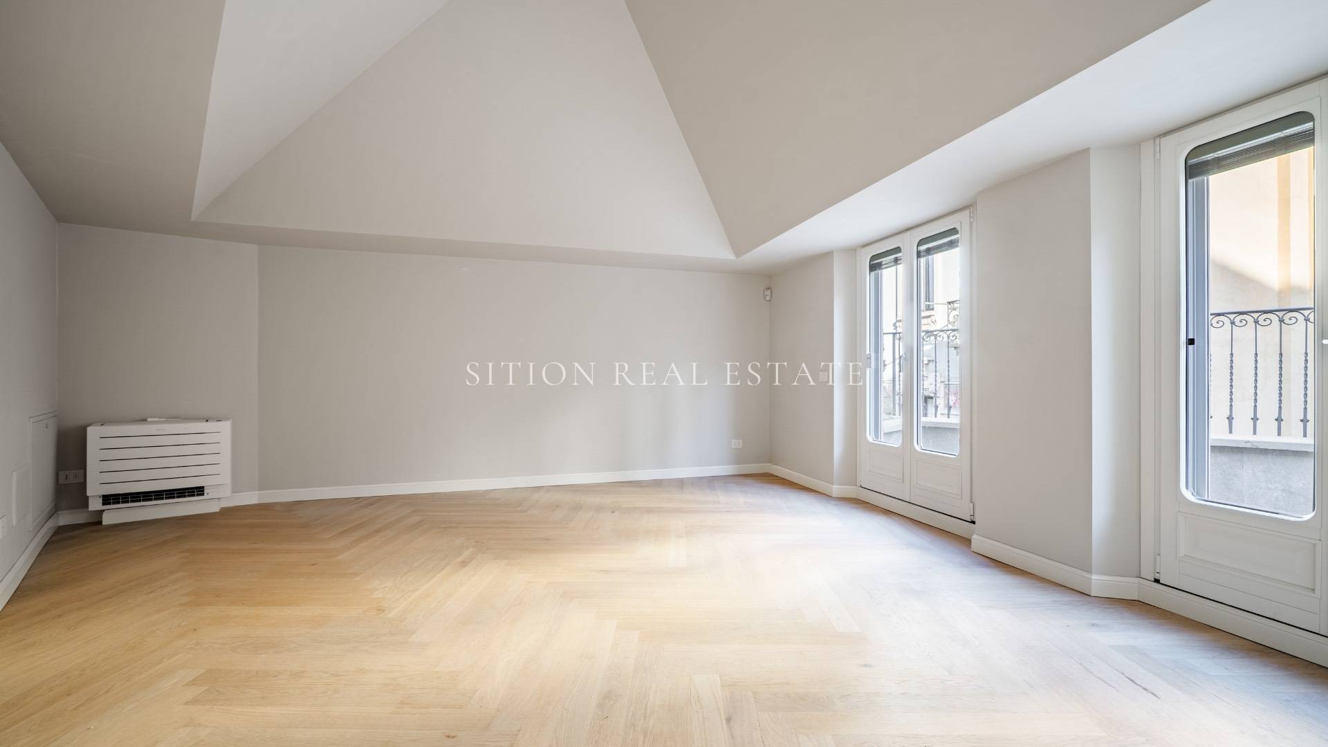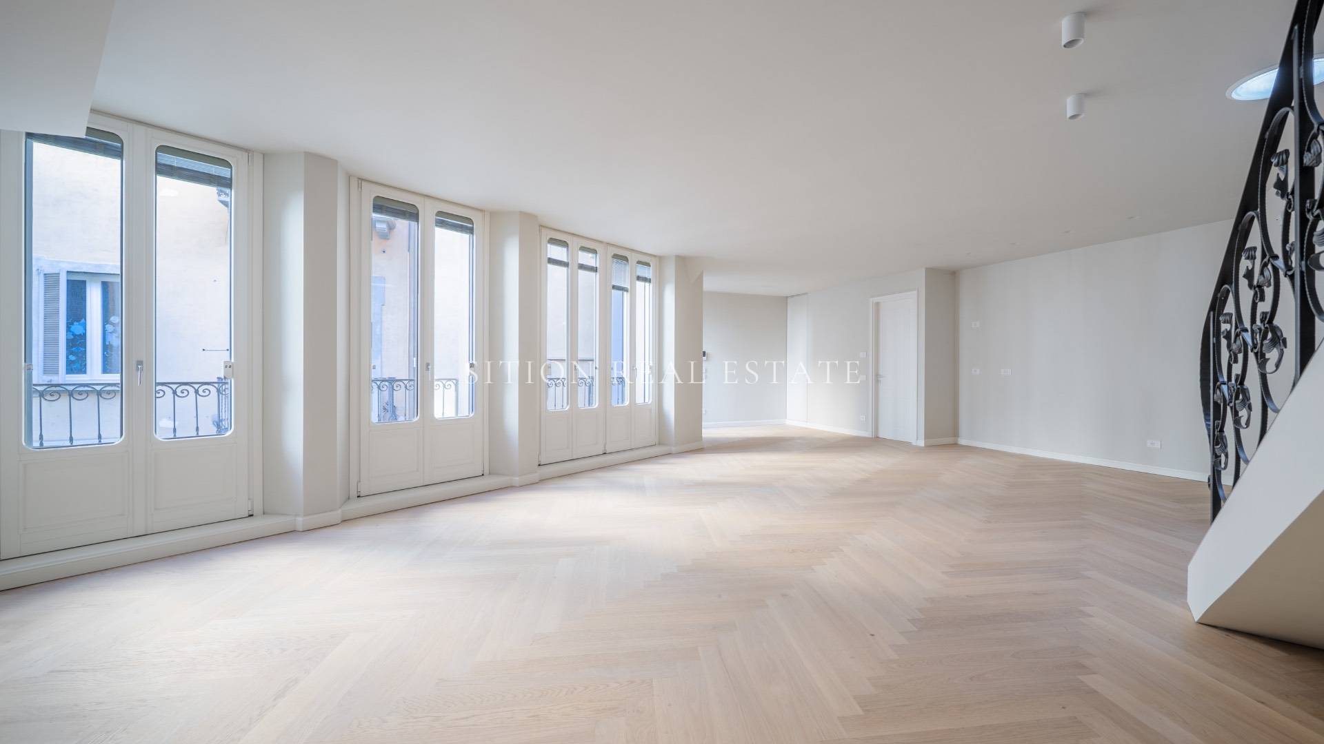 Elegante Residenza Terra-Cielo in Vendita Via Ariosto 19, Milano (Zona Conciliazione) Nel cuore di una delle vie pi iconiche e raffinate dellantica Milano, allinterno di un palazzo depoca di grande pregio, proponiamo in vendita una residenza terra-cielo indipendente di circa 450 m, completamente ristrutturata e reinterpretata in chiave contemporanea.