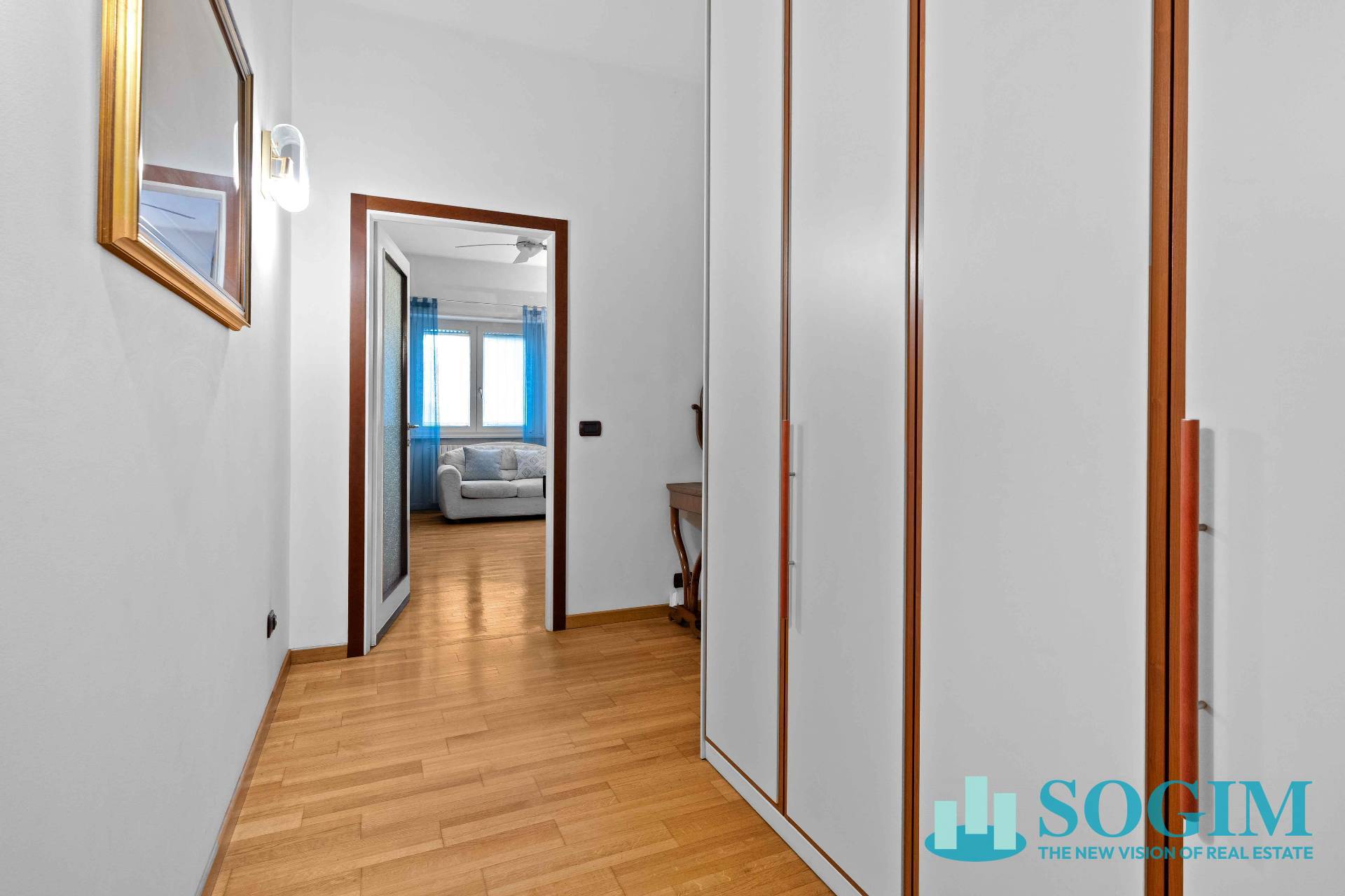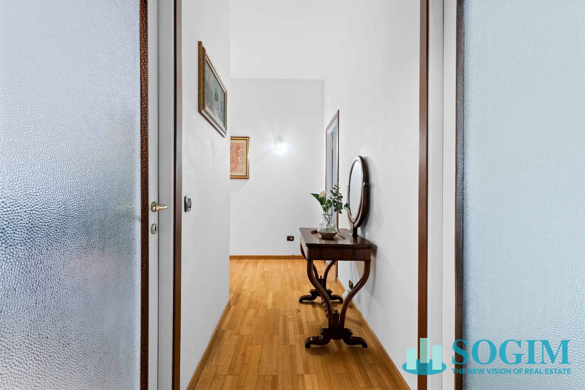 Caratteristiche dell'abitazione: la pavimentazione del disimpegno, del soggiorno e della camera in parquet in rovere, mentre quella della cucina ricoperta con piastrelle in marmetta.