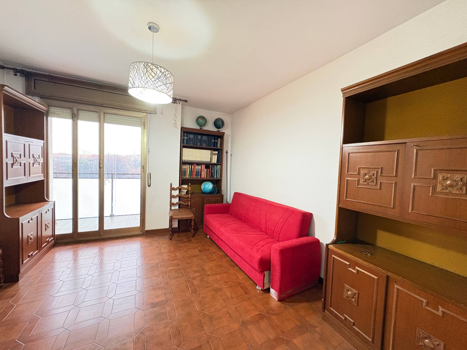 Quarto Oggiaro, Via Filippo de Pisis, appartamento di tre locali, posto al quinto piano, composto da ingresso, soggiorno, cucina abitabile, due camere da letto, bagno finestrato, ripostiglio e due balconi, oltre il vano cantina e il posto auto condominiale.