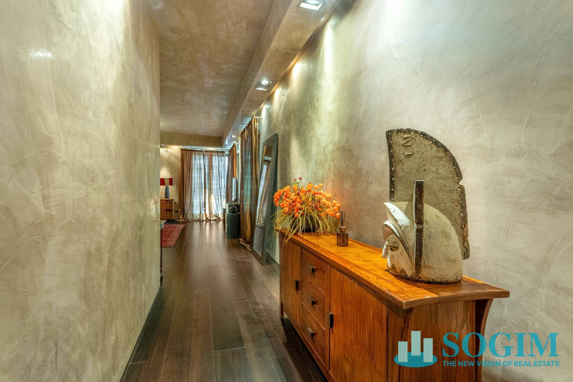Possibilit di ampio box. Alcune finiture: pavimenti in parquet legno rovere castano, infissi in legno bifacciali con doppia verniciatura e vetri termici, aria condizionata canalizzata ed un'illuminazione progettata per valorizzare ogni ambiente.