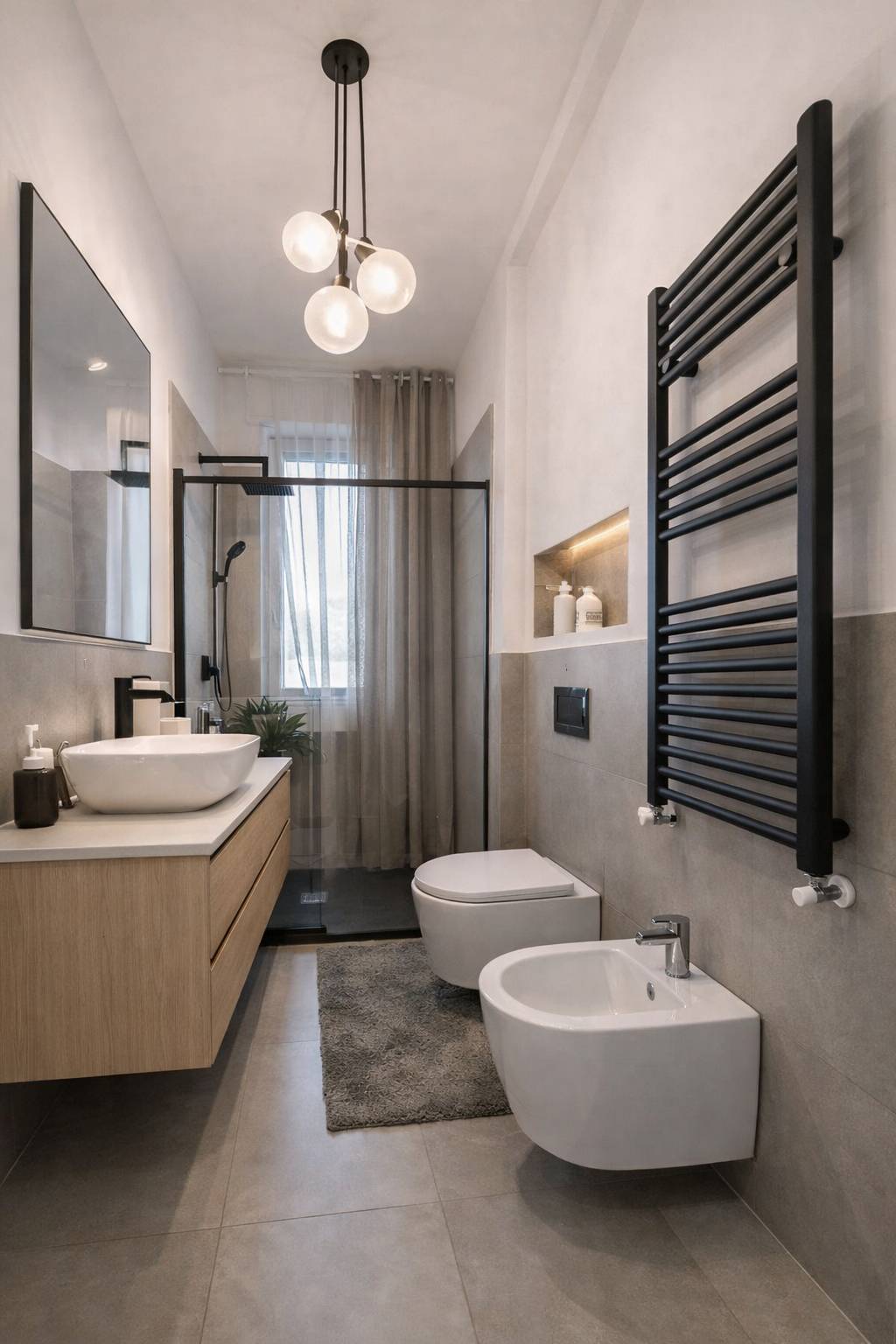 Il bagno finestrato completamente ristrutturato.