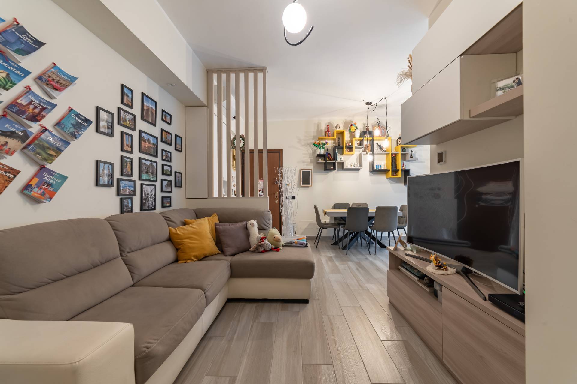 Limmobile si compone di: ingresso su accogliente soggiorno con cucina a vista, ampia camera matrimoniale con cabina armadio, cameretta versatile, perfetta come seconda stanza, studio o camera bambini, bagno e cantina di pertinenza La ristrutturazione recente ha valorizzato gli ambienti rendendoli moderni, funzionali e pronti per essere abitati senza necessit di interventi.
