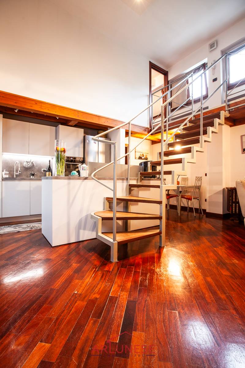 Situato nel vivace e dinamico quartiere di Maciacchini in Milano, questo appartamento, in stile LOFT; composto da soggiorno, cucina a vista con uscita su area di propriet, camera, bagno e ripostiglio al piano terra, collegata da scala a giorno troviamo soppalco che conduce alla camera matrimoniale con cabina armadio e bagno di servizio, l'altra parte del soppalco composta da spazio per scrivania o per eventuale divano letto con ripostiglio.