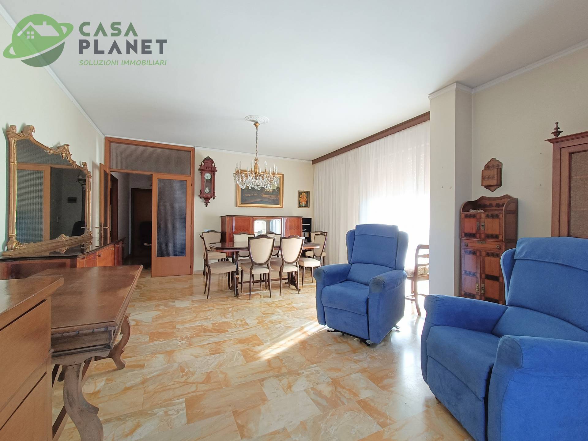 L'appartamento presenta pavimentazione in marmo, infissi con tapparelle e zanzariere, riscaldamento centralizzato con valvole digitali e aria condizionata.