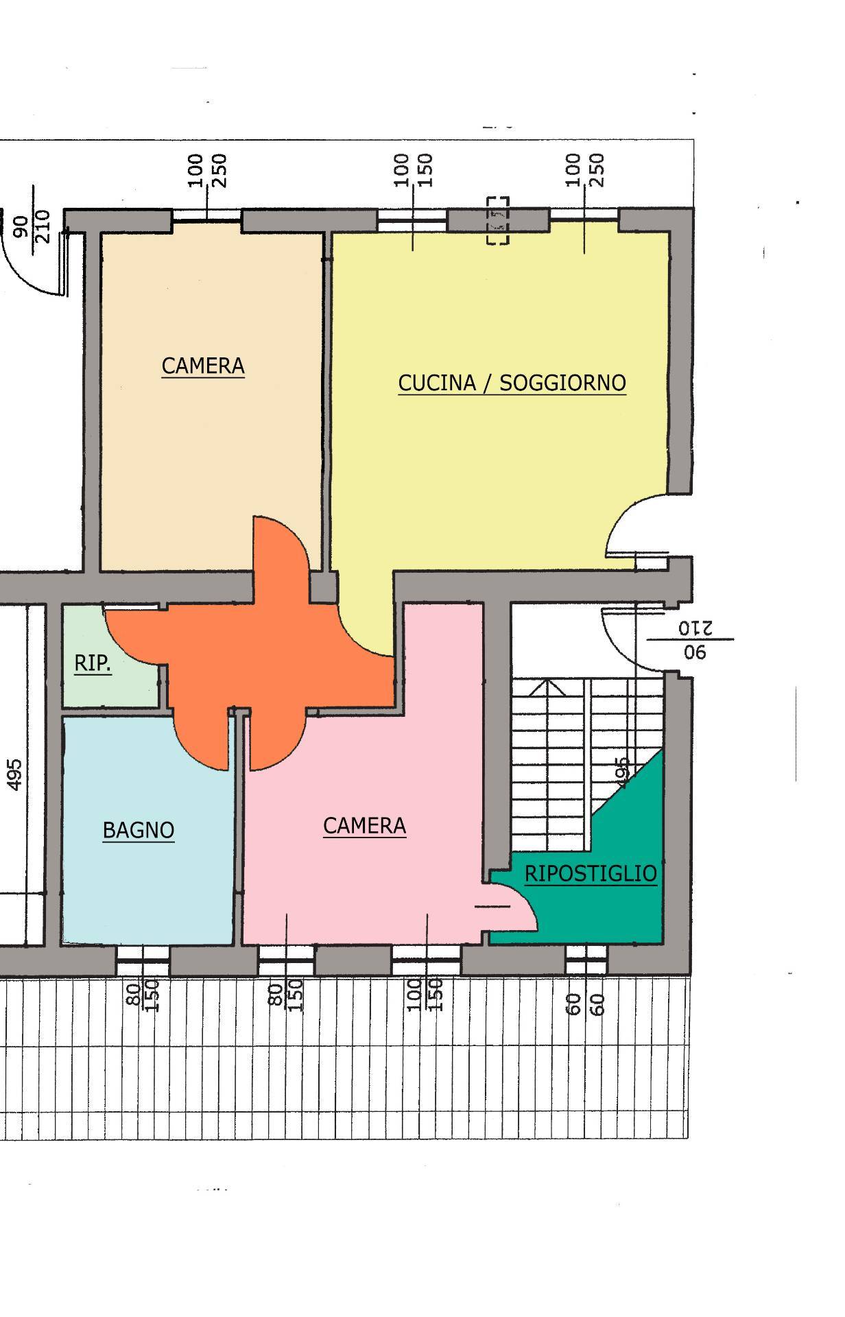 La soluzione da noi proposta si presenta con ingresso su zona giorno, angolo cottura, ampio bagno, cameretta e camera matrimoniale con ampio ripostiglio nel sottoscala.