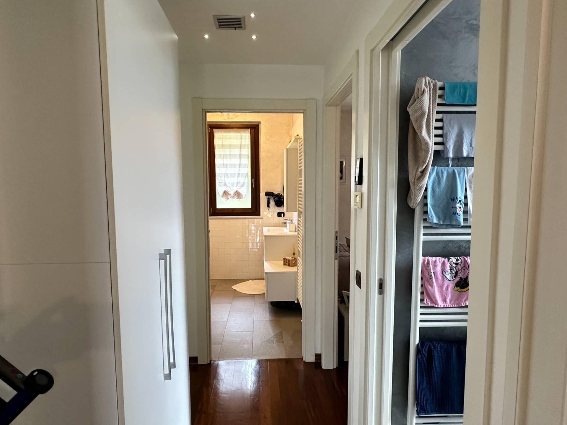 Gli spazi interni arricchiti da finiture di pregio risultano composti da zona giorno con ingresso in ampio soggiorno con cucina a vista e accesso diretto al giardino esterno dal quale possibile ammirare uno splendido panorama verso l'arco alpino.