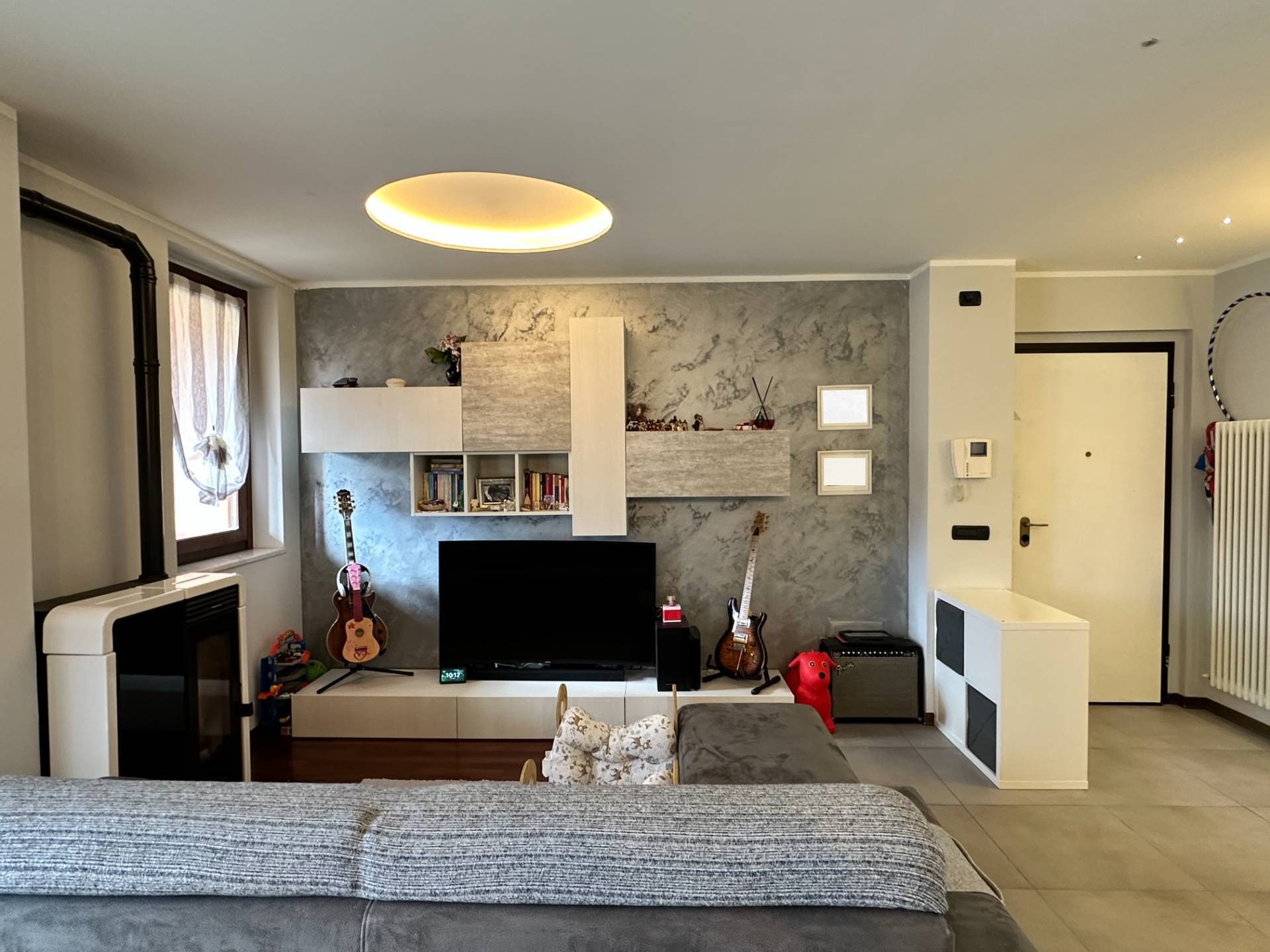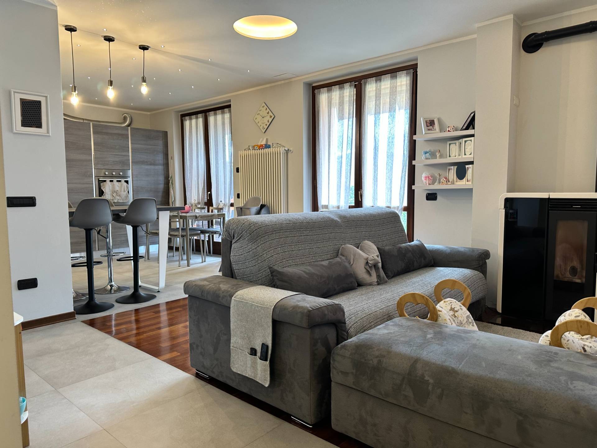 Gli spazi interni arricchiti da finiture di pregio risultano composti da zona giorno con ingresso in ampio soggiorno con cucina a vista e accesso diretto al giardino esterno dal quale possibile ammirare uno splendido panorama verso l'arco alpino.