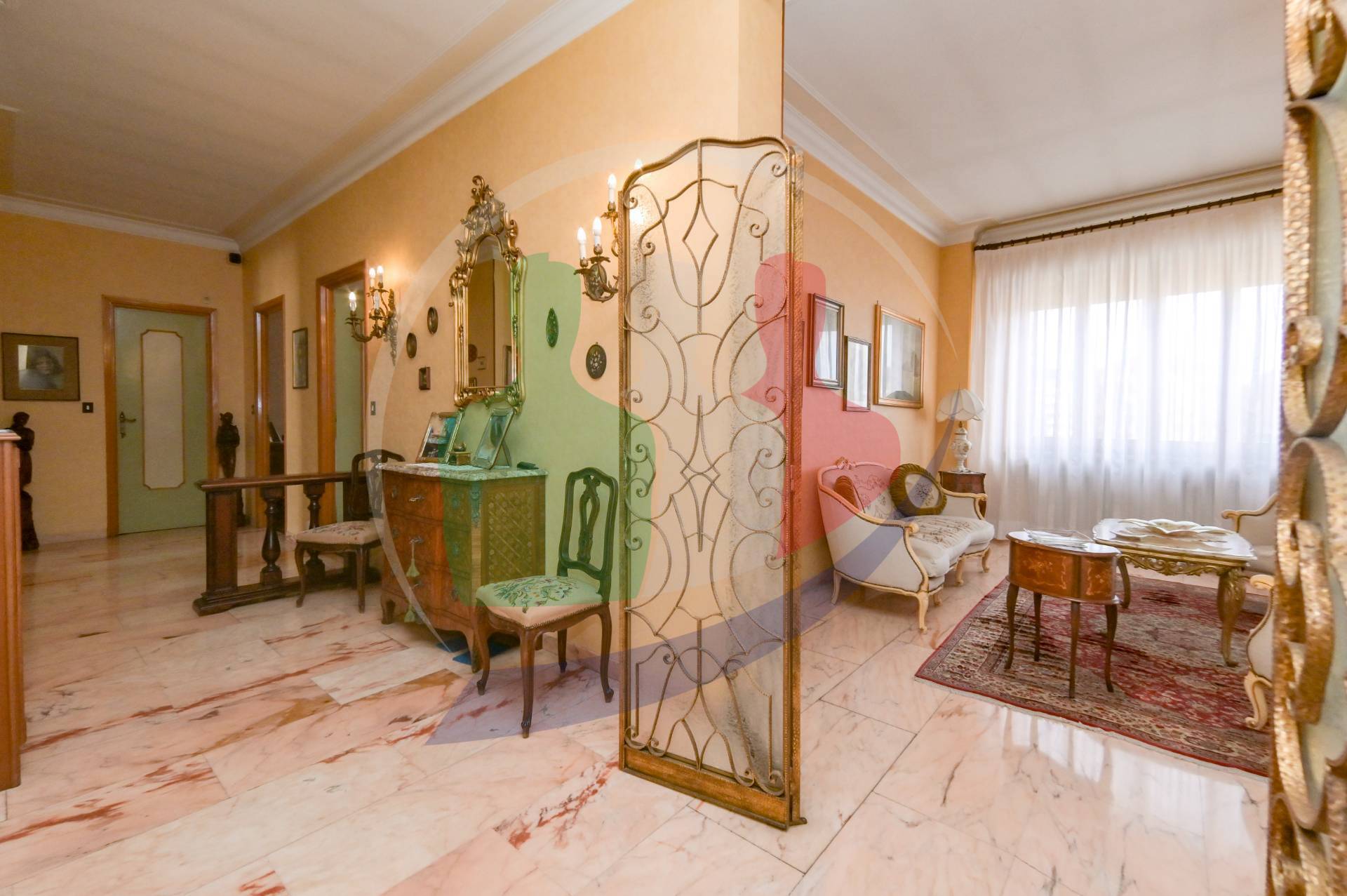 Entrando nella soluzione si ha la sensazione di essere avvolti dalla luce del sole che entra nel salone doppio tramite le porte finestre a tre ante, con accesso al balcone di pertinenza, serrande elettriche per facilitare l'apertura.